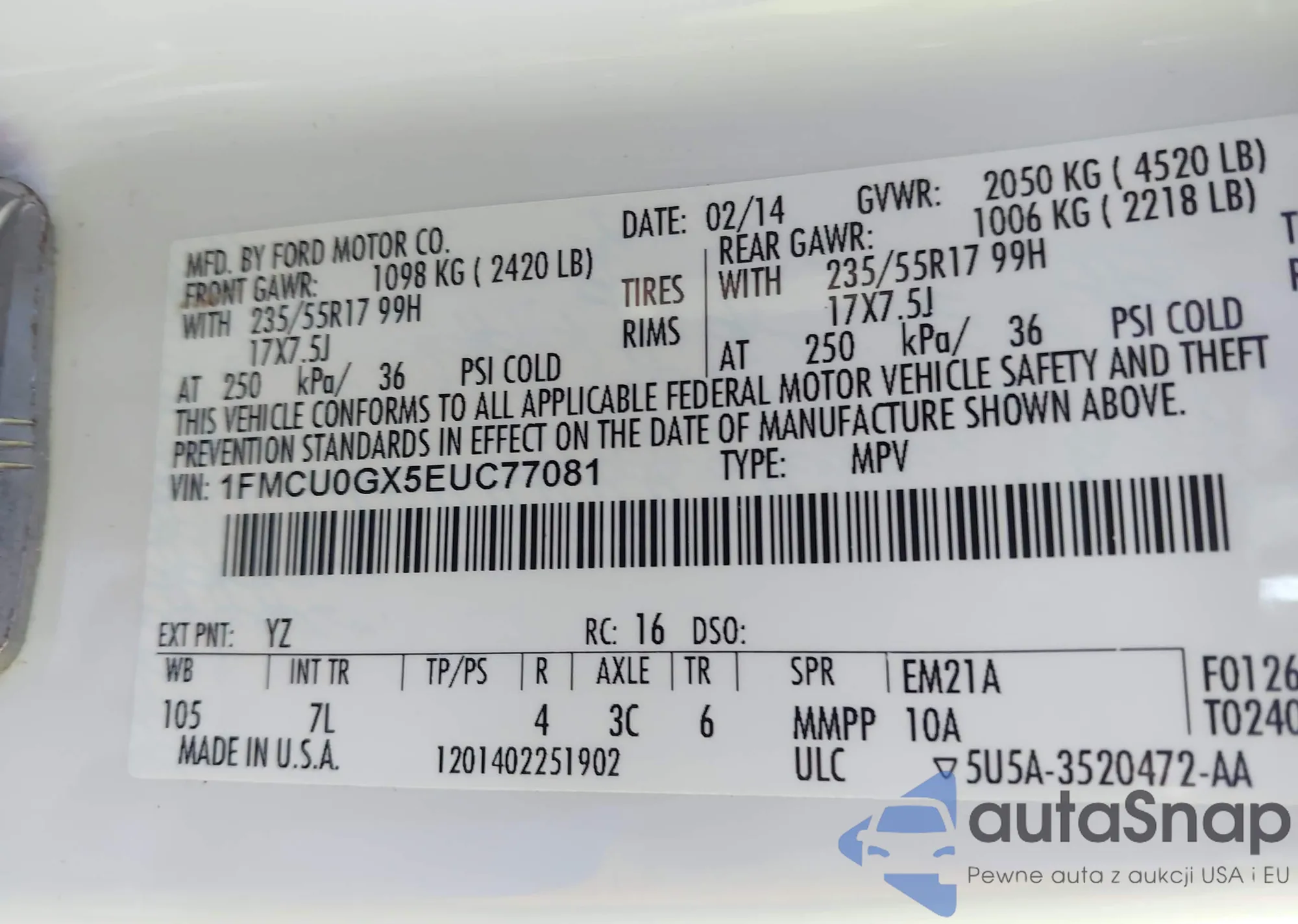 LOT: 43435523 VIN: 19XFB2F51DE036439