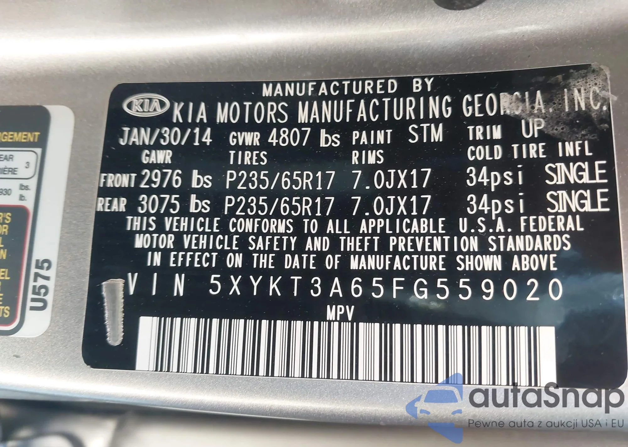 • VIN 5XYKT3A65FG559020