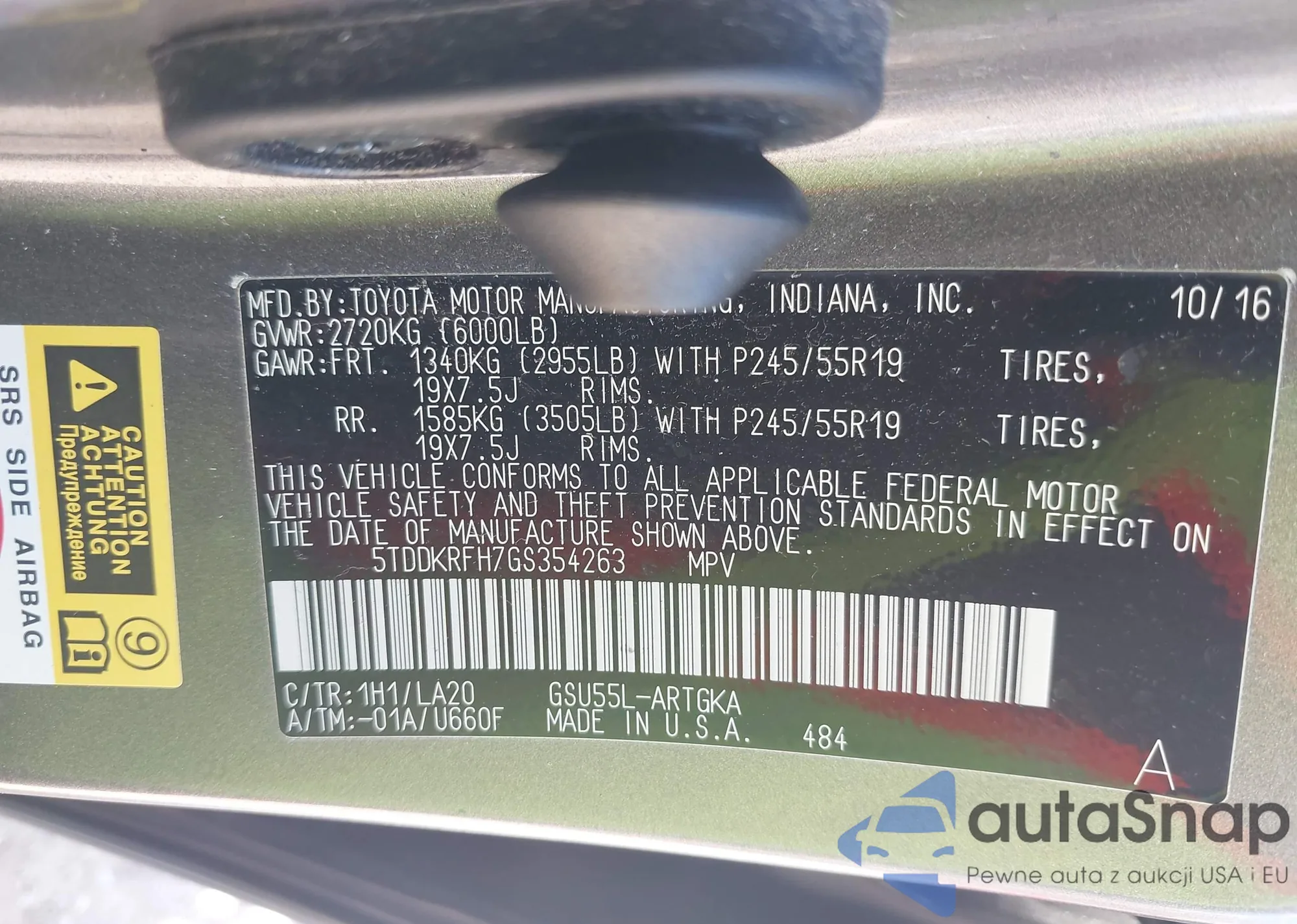 • VIN 5TDDKRFH7GS354263