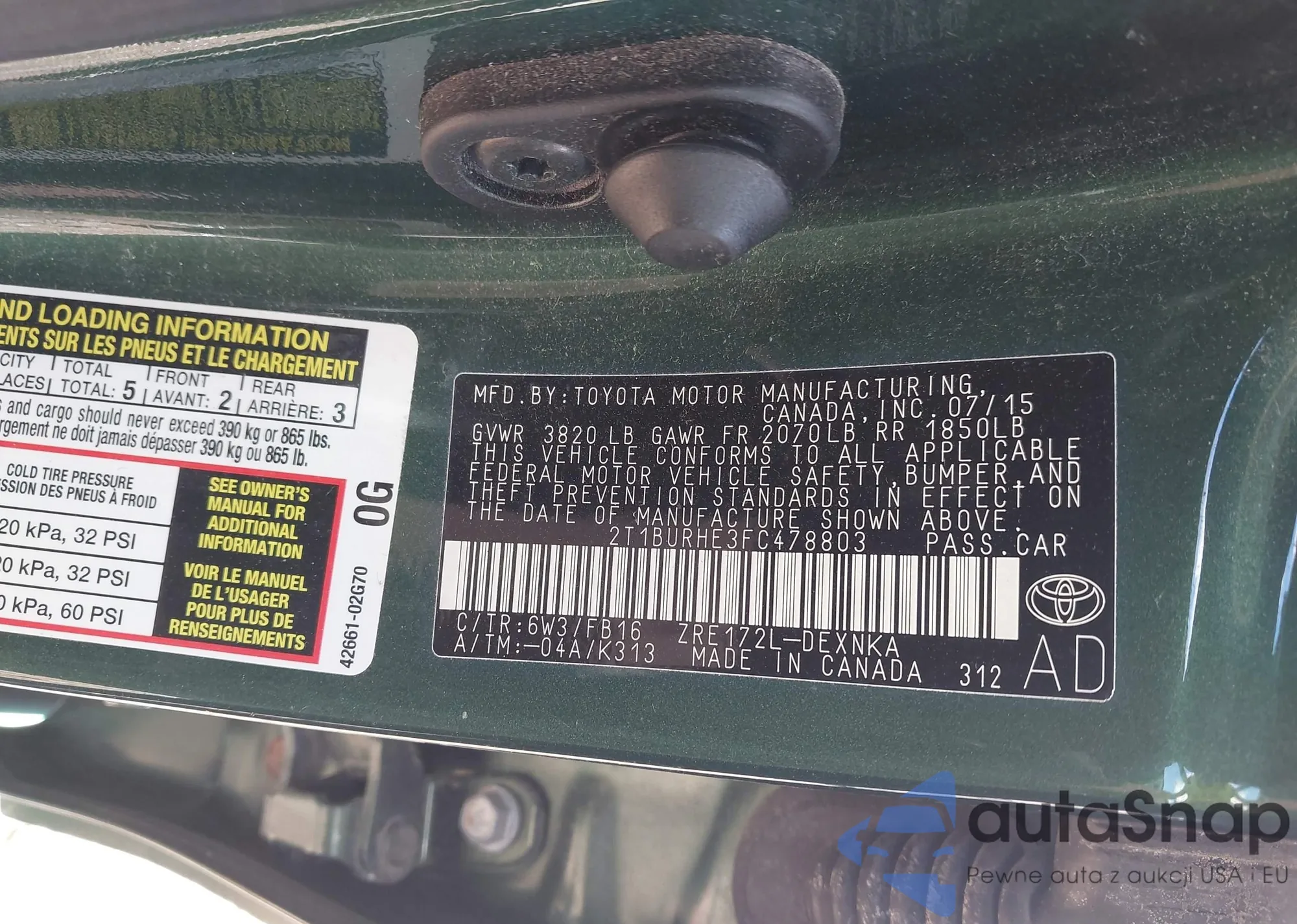 • VIN 2T1BURHE3FC478803