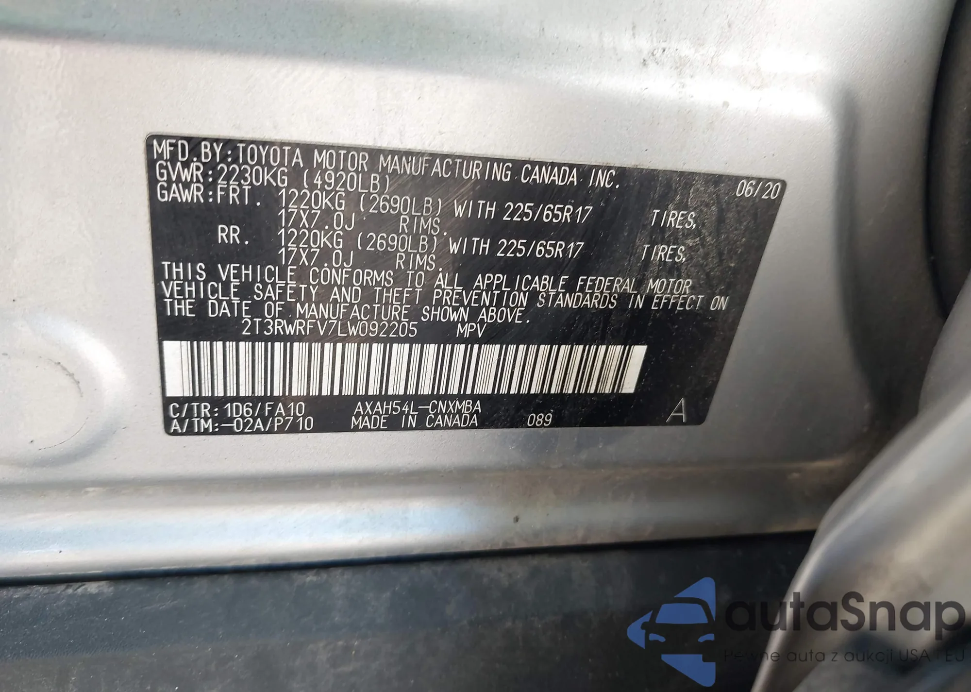 LOT: 43416993 VIN: 2T3RWRFV7LW092205