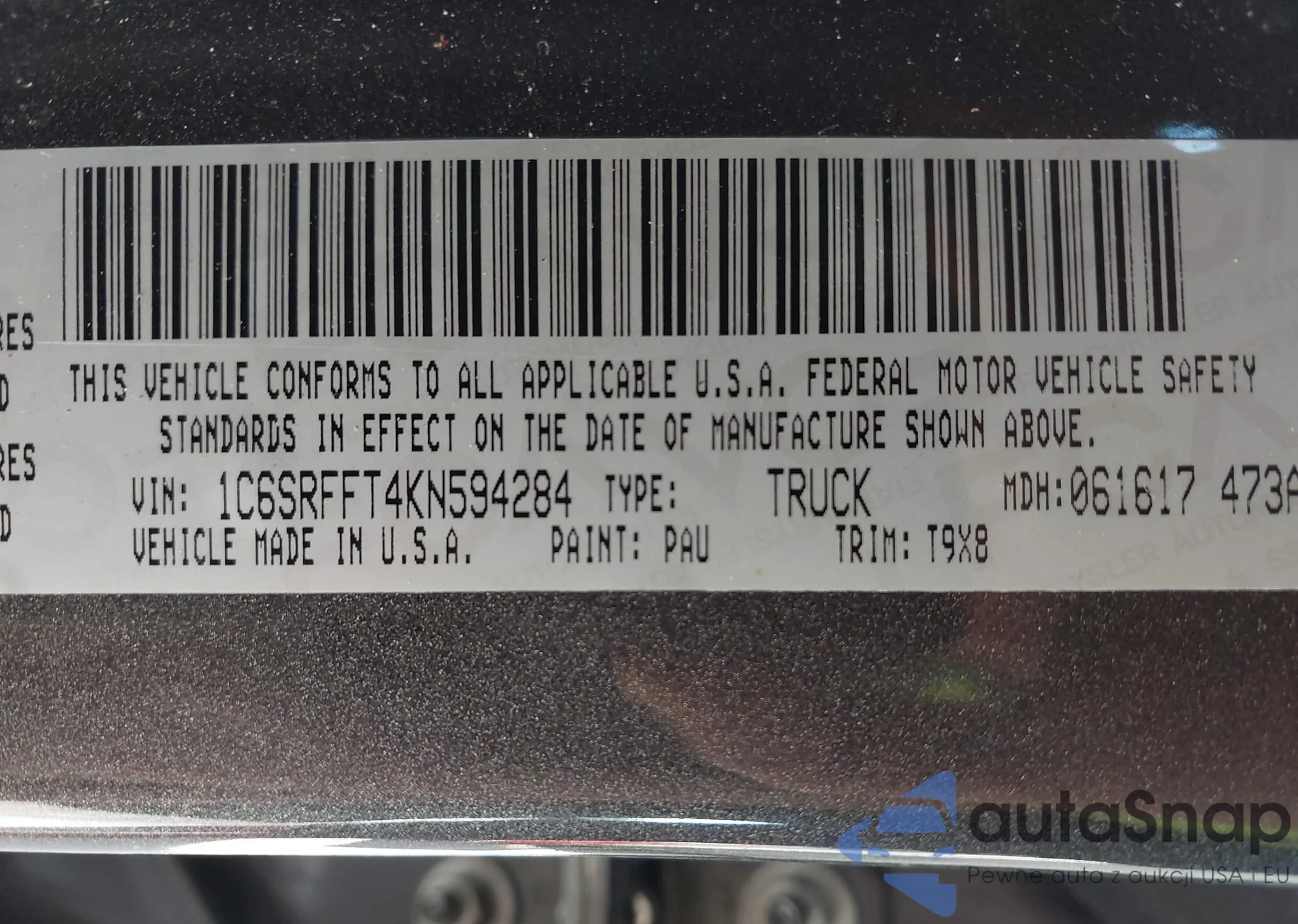 • VIN 1C6SRFFT4KN594284