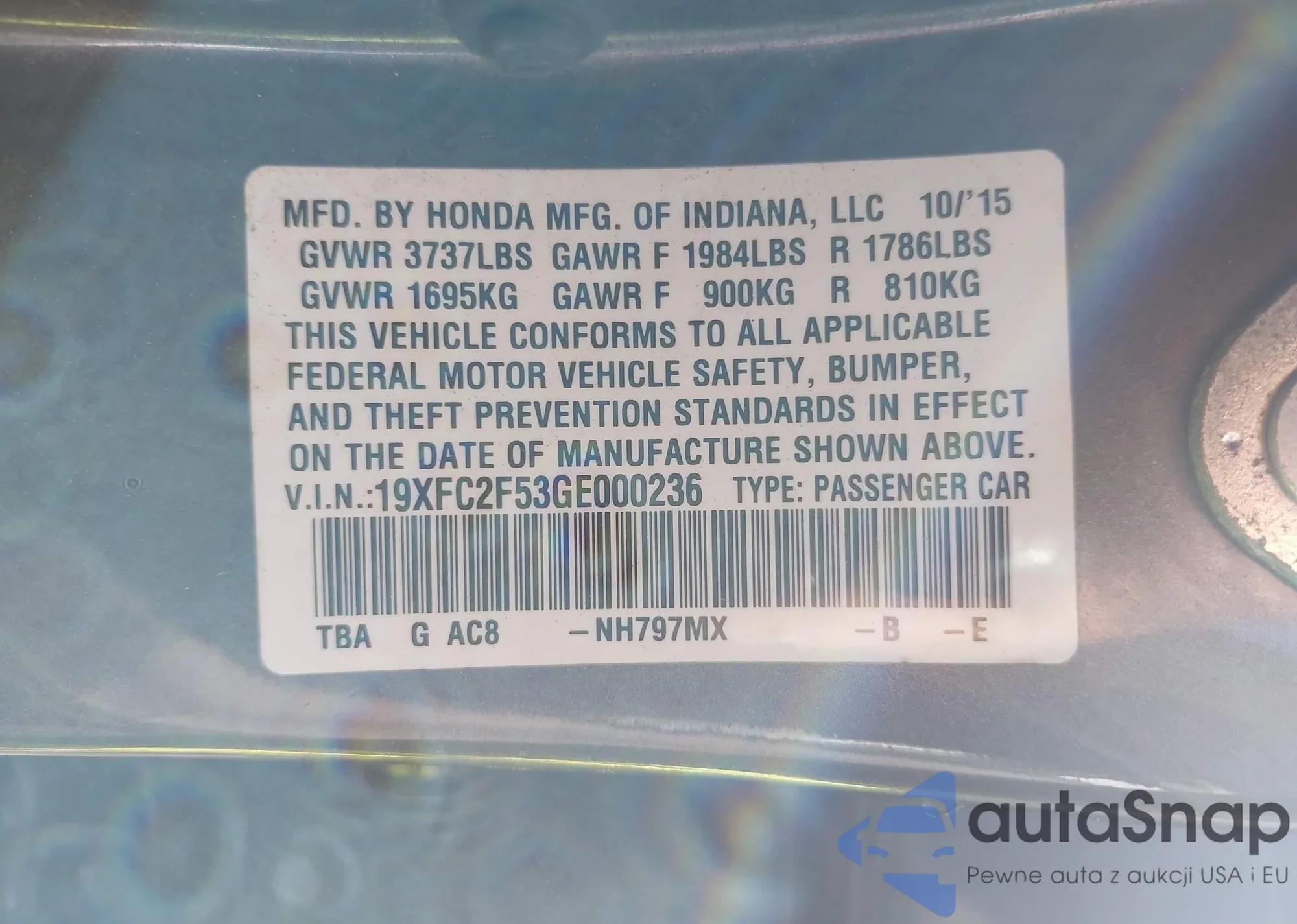 • VIN 19XFC2F53GE000236