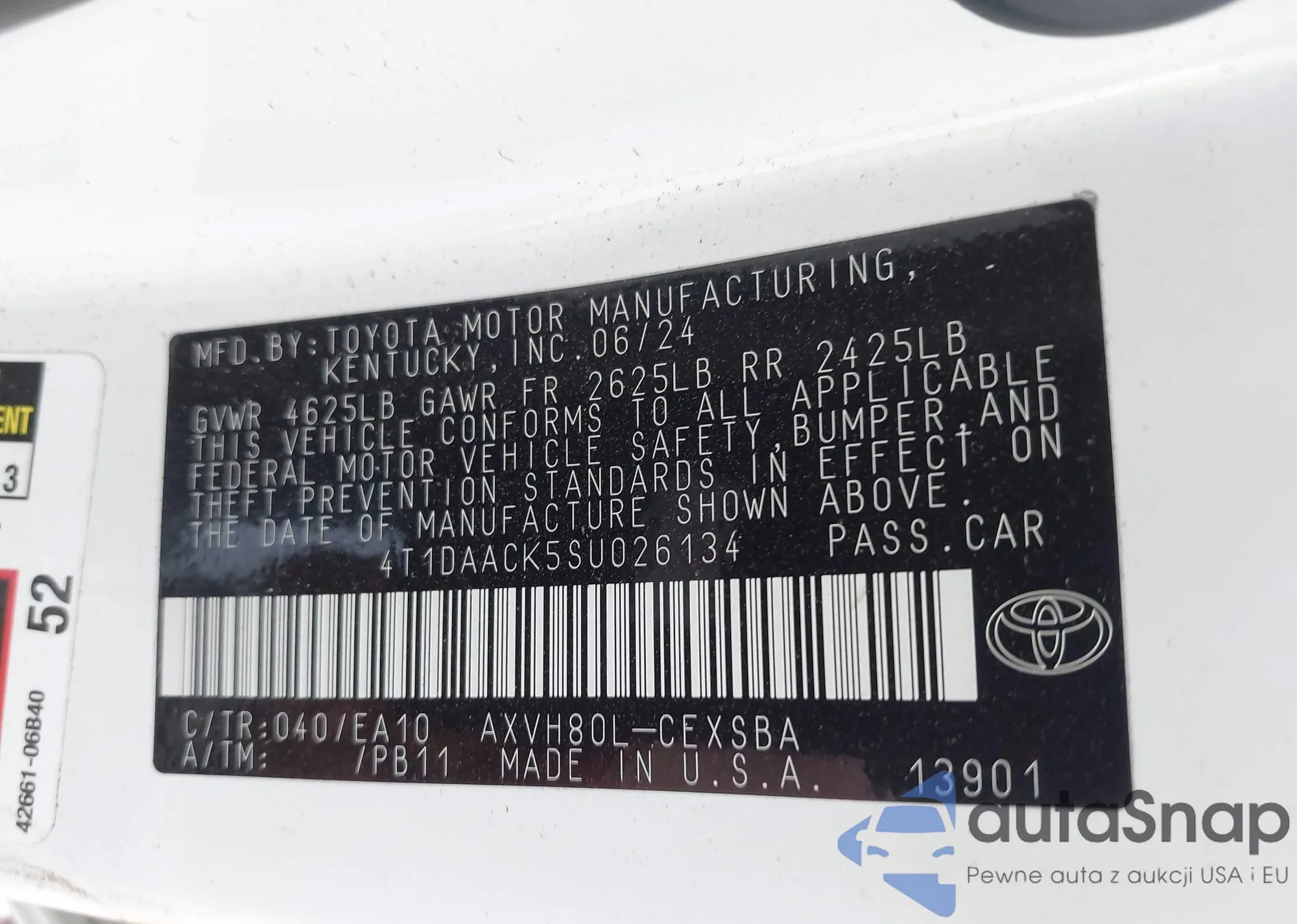 LOT: 43467370 VIN: 4T1DAACK5SU026134