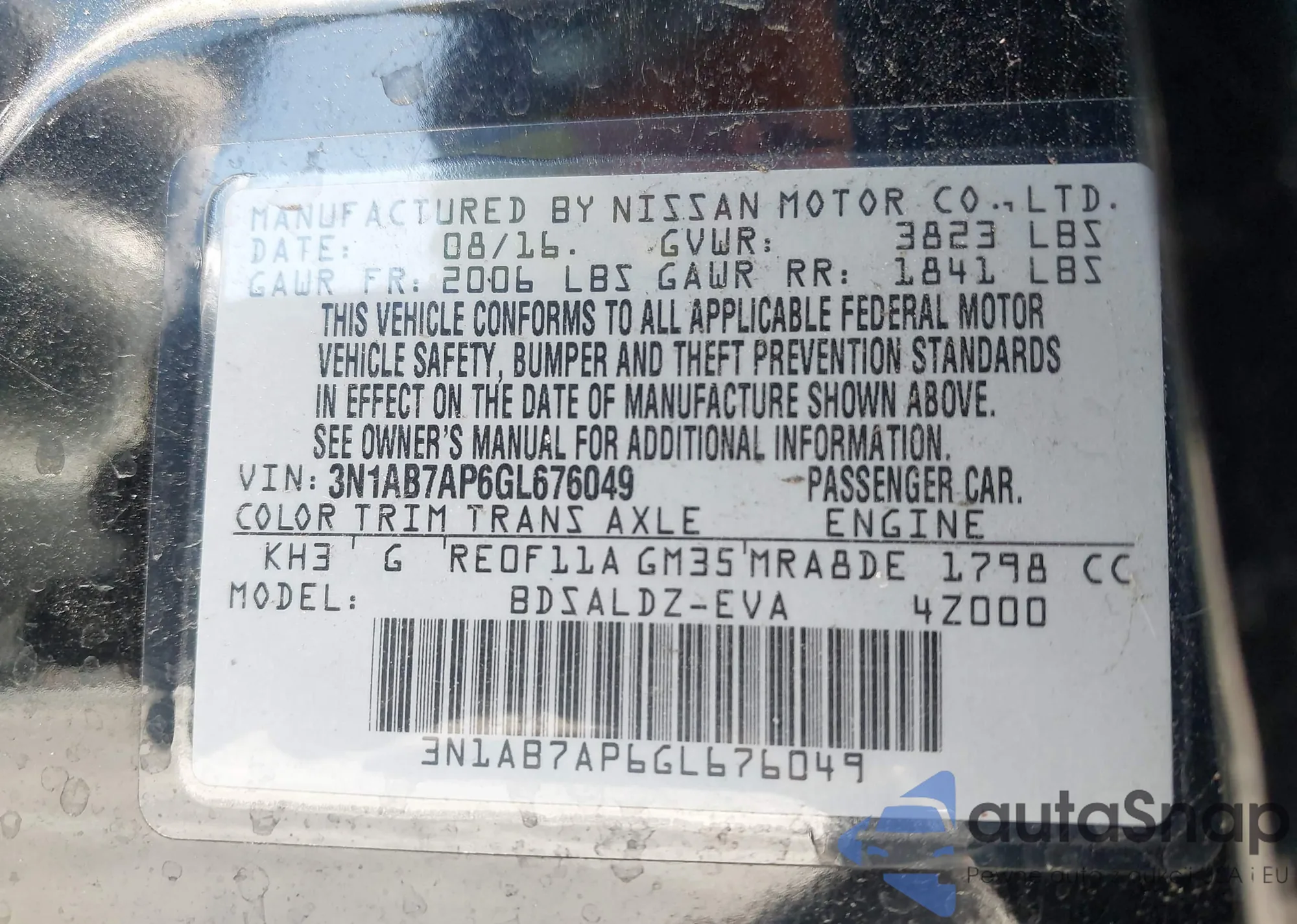 • VIN 3N1AB7AP6GL676049
