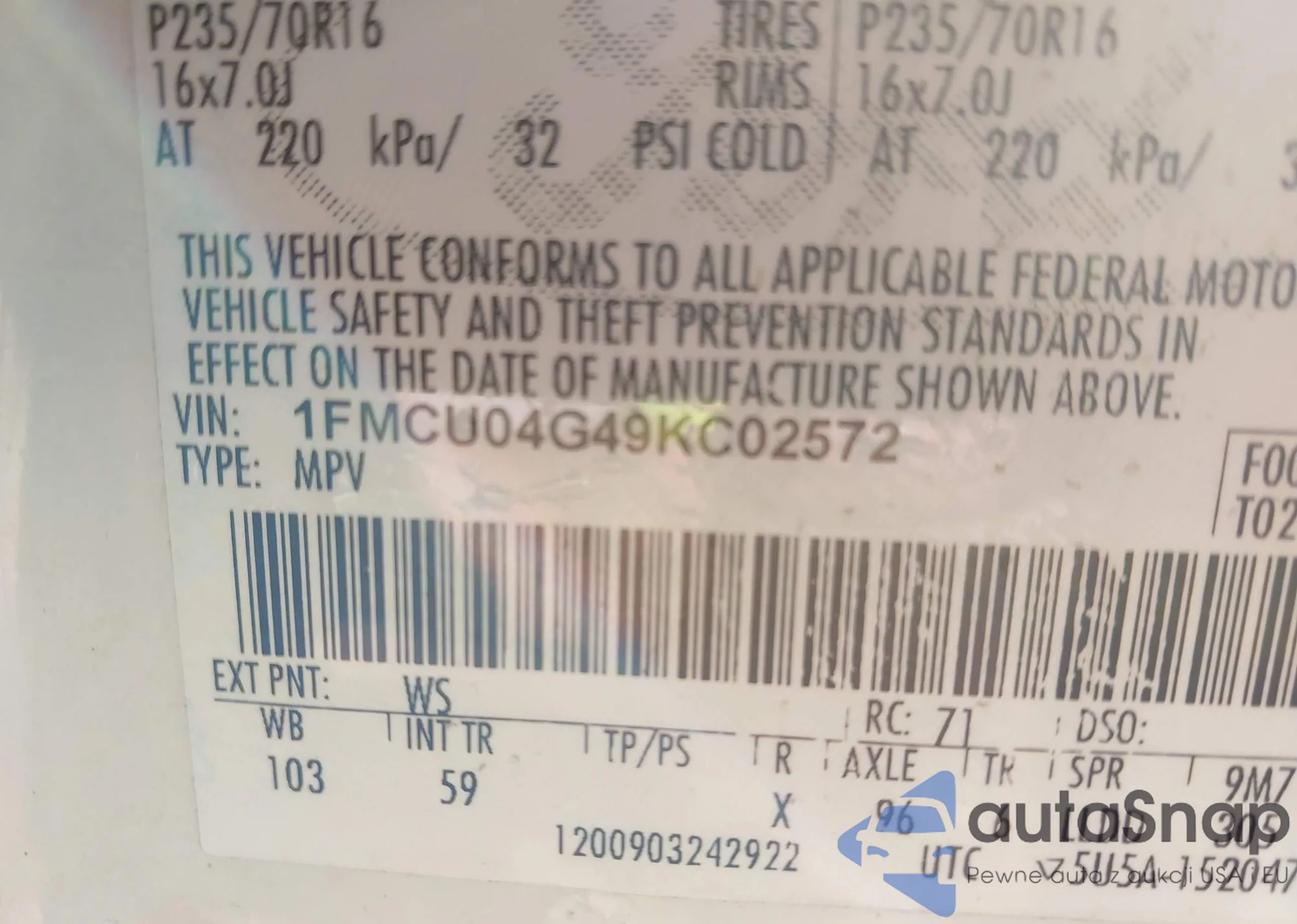 LOT: 43416772 VIN: JTDKB20UX53005018