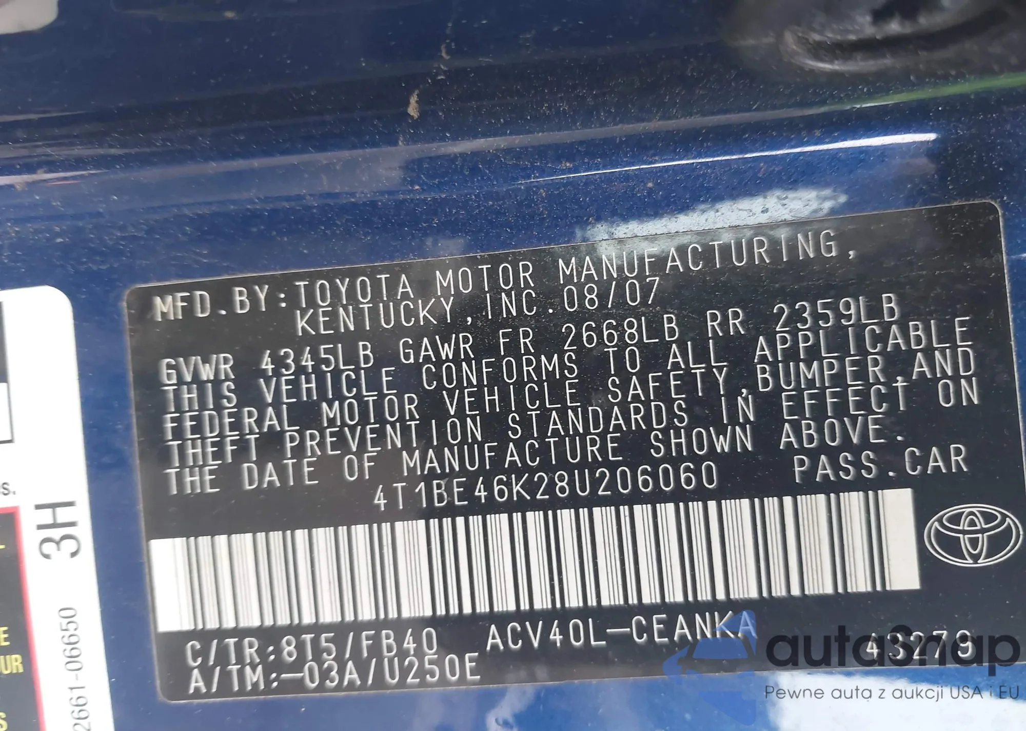 LOT: 43447404 VIN: 4T1BE46K28U206060