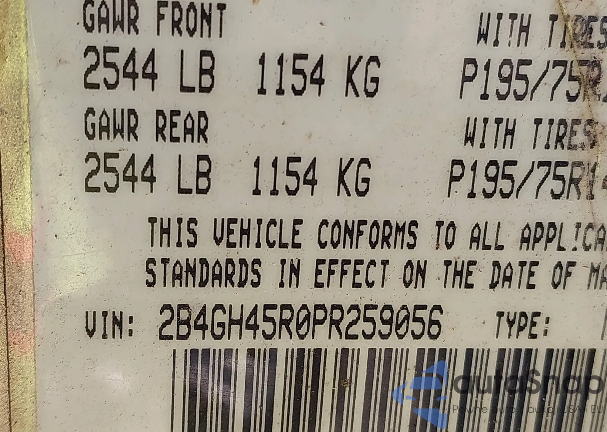 • VIN 1D7RV1GT4AS233325