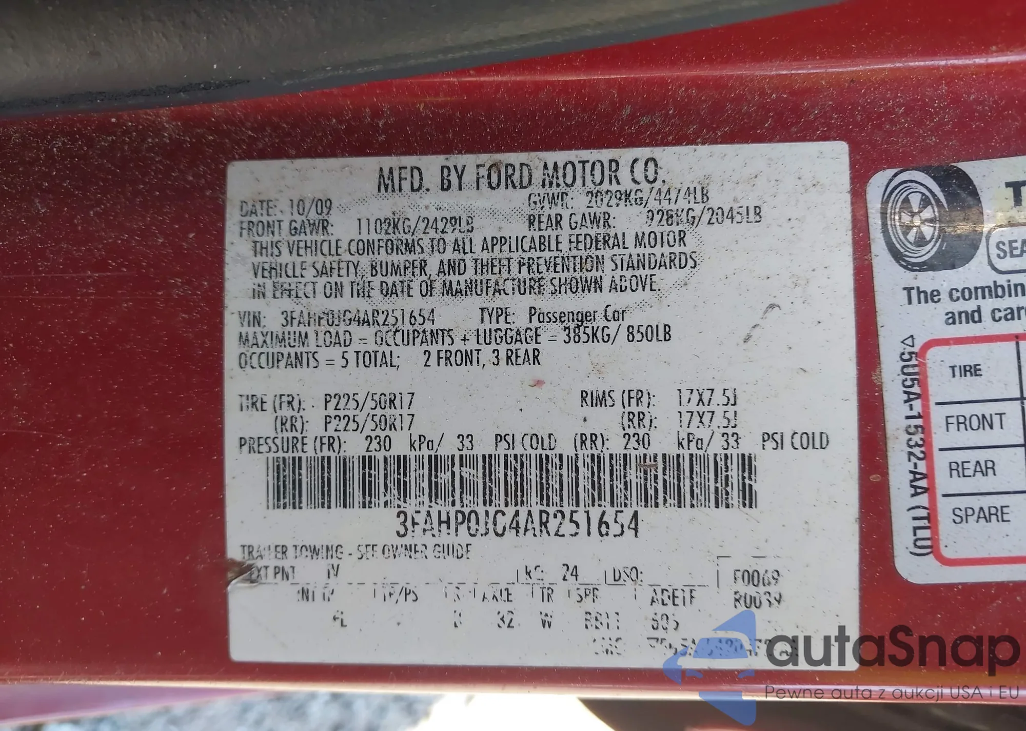 • VIN 3FAHP0JG4AR251654
