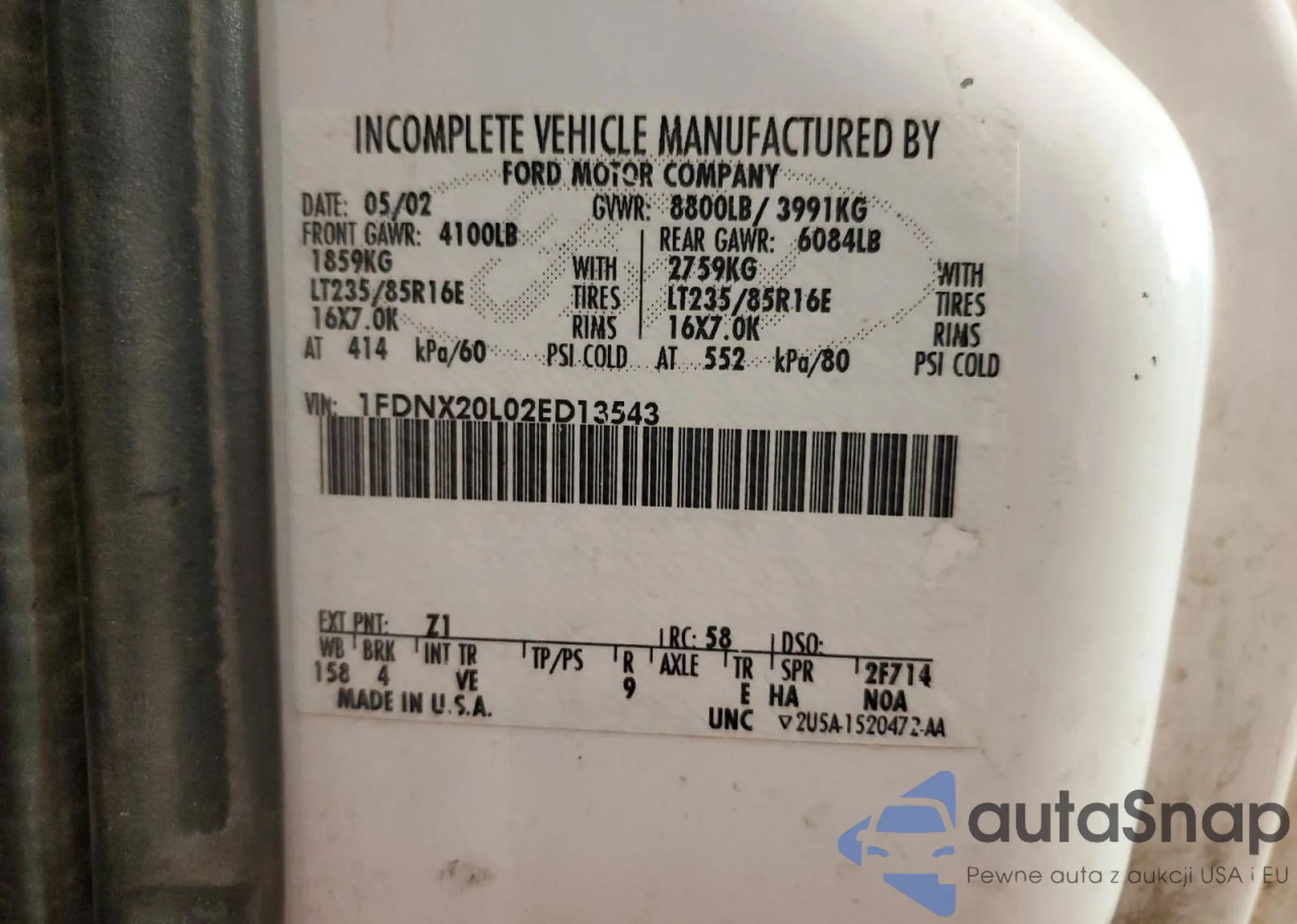 • VIN 1FDNX20L02ED13543