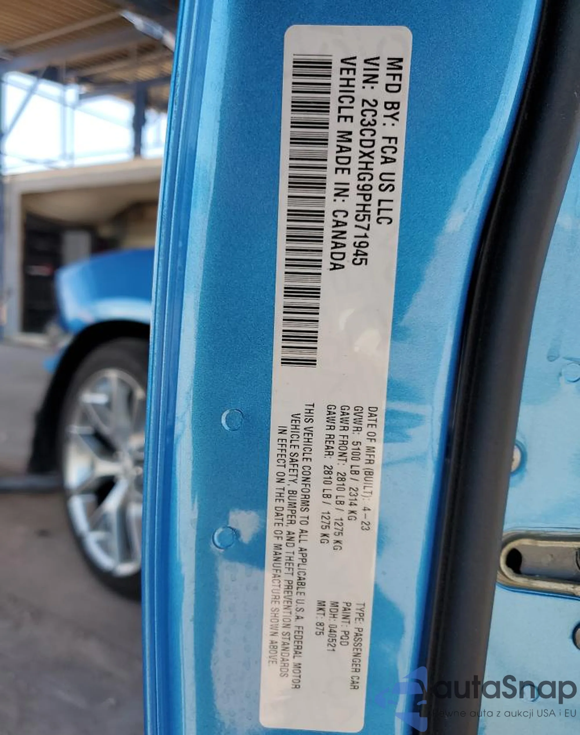 LOT: 81340105 VIN: 2C3CDXHG9PH571945
