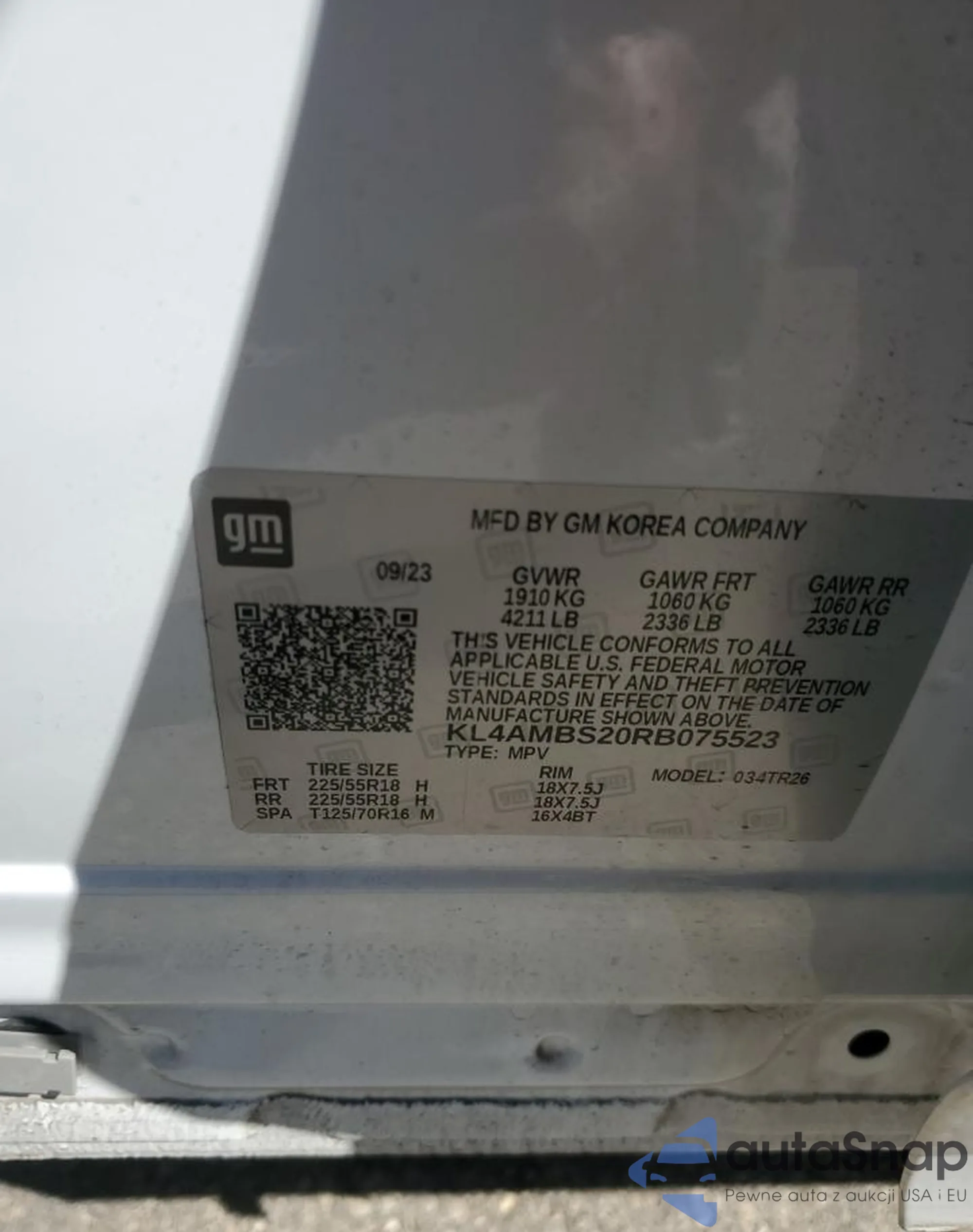 LOT: 71871015 VIN: KL4AMBS20RB075523