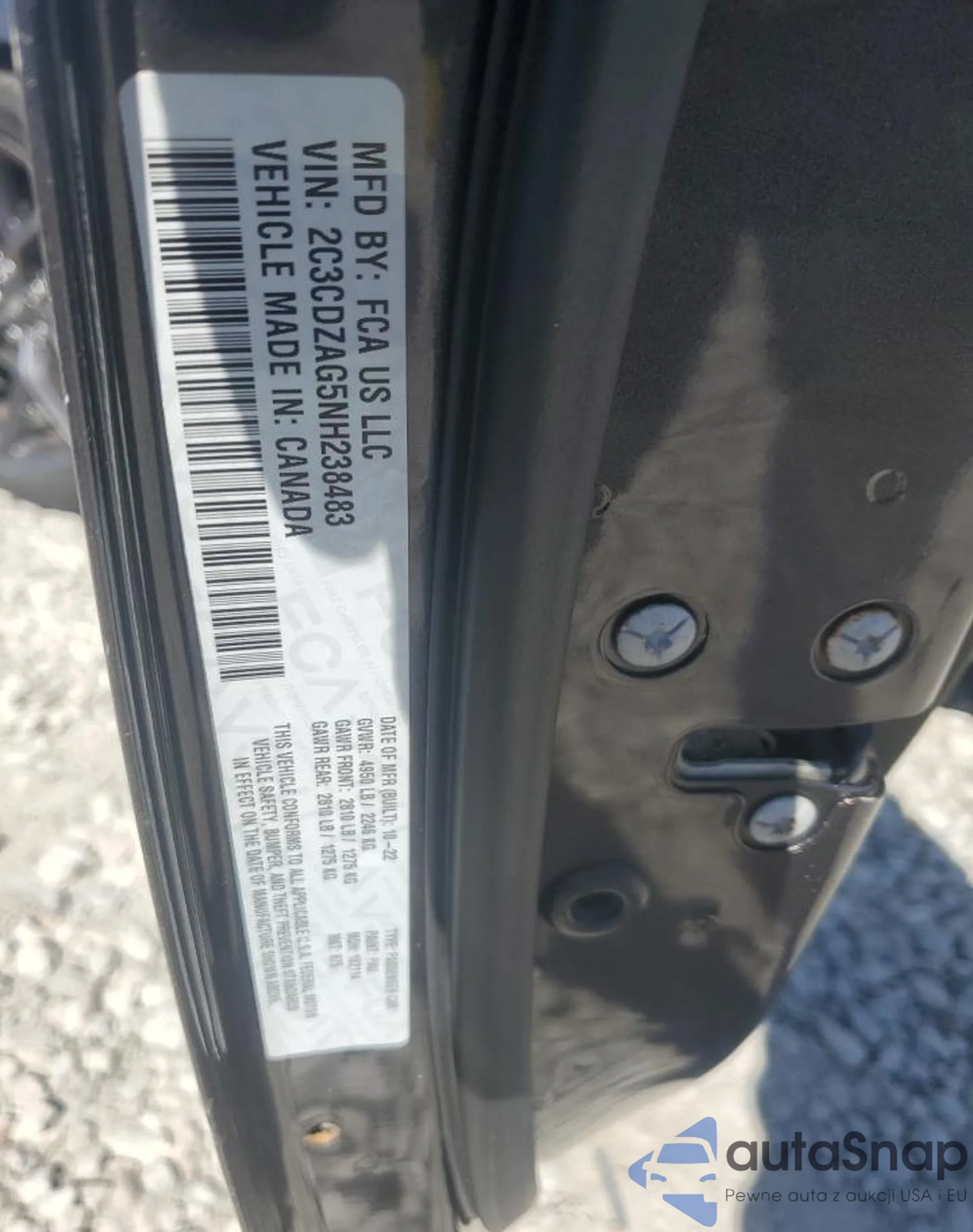 • VIN 2C3CDZAG5NH238483