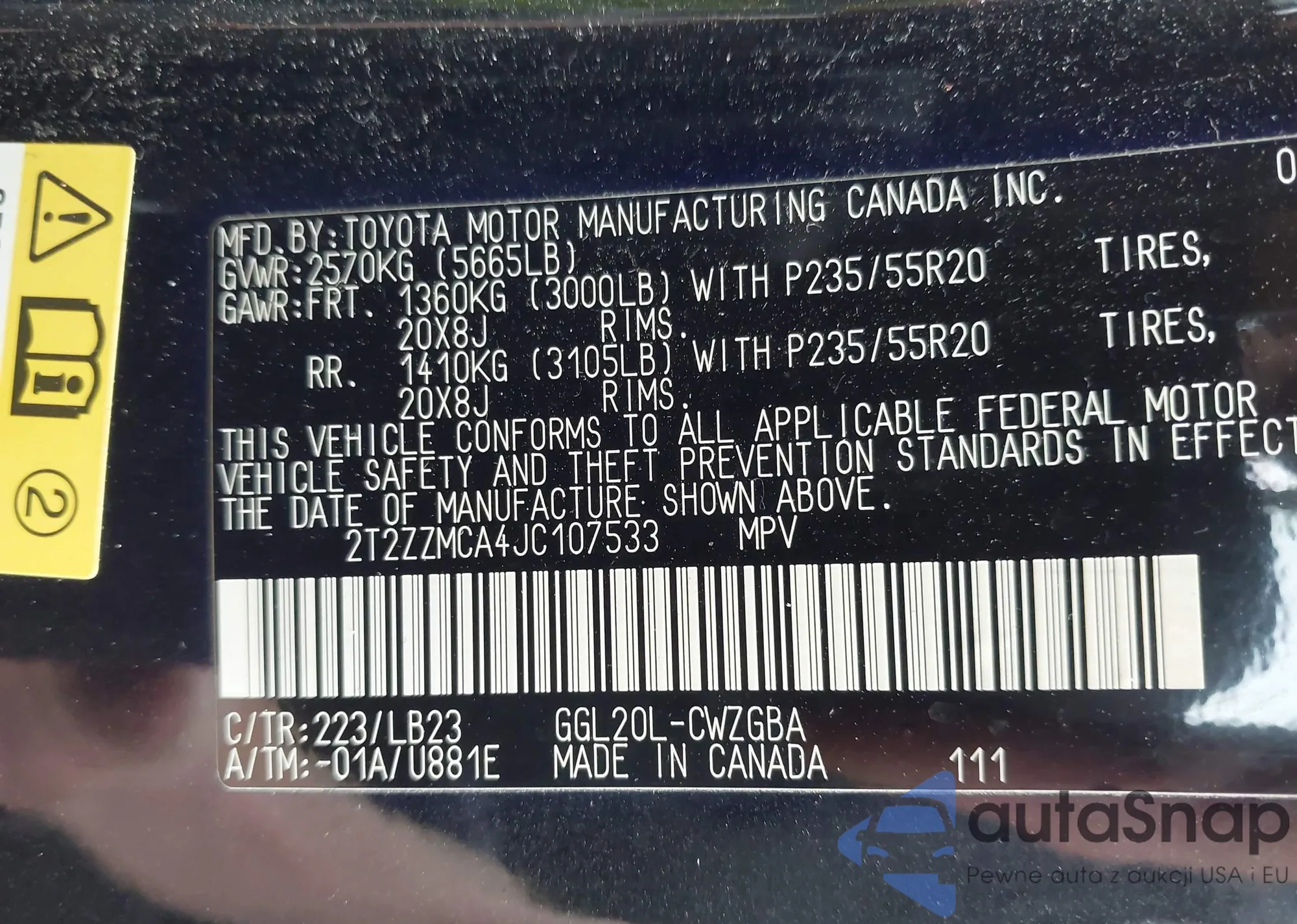 • VIN 2T2ZZMCA4JC107533