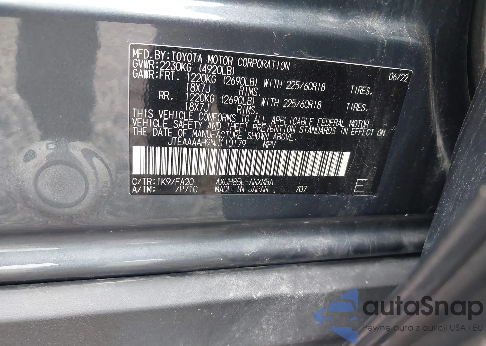 • VIN JTEAAAAH9NJ110179