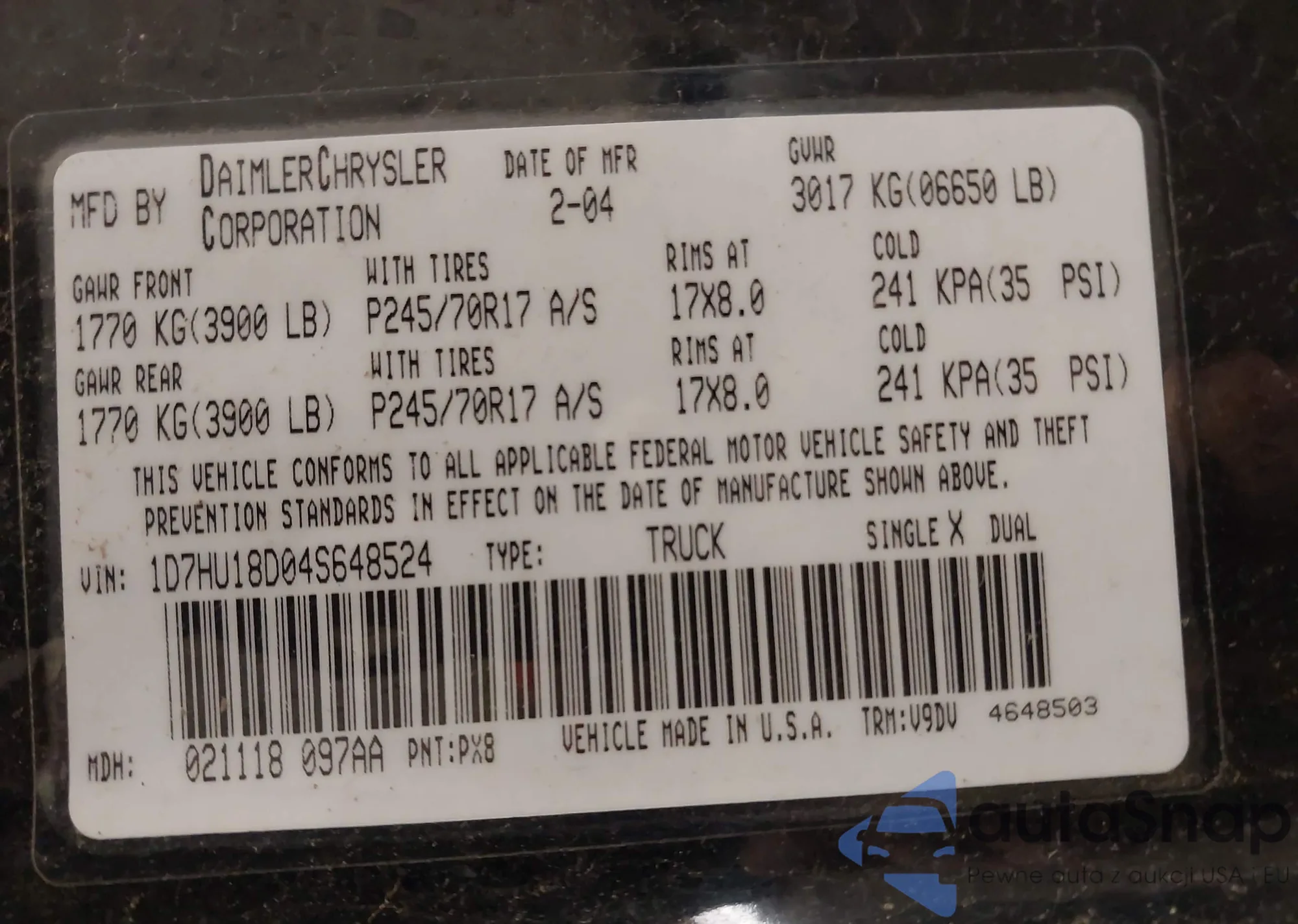 • VIN 1D7HU18D04S648524