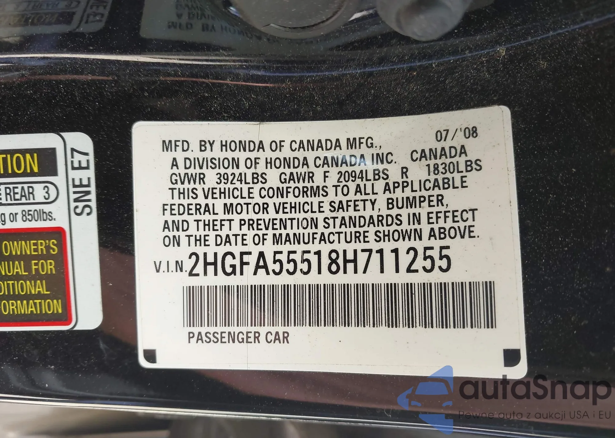• VIN 2HGFA55518H711255