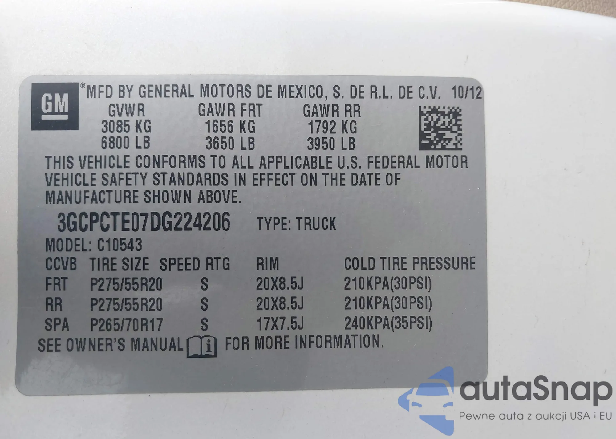 • VIN 2GKALYEK5D6277085