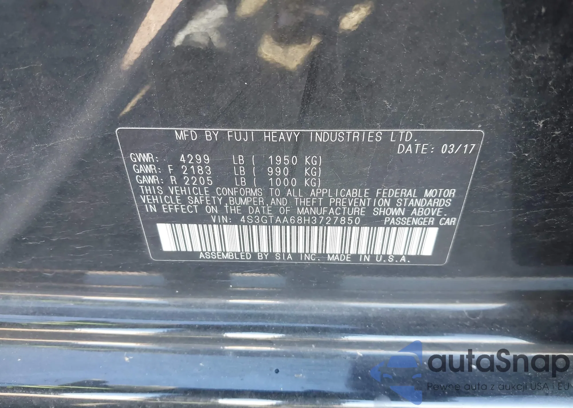 • VIN 4S3GTAA68H3727850