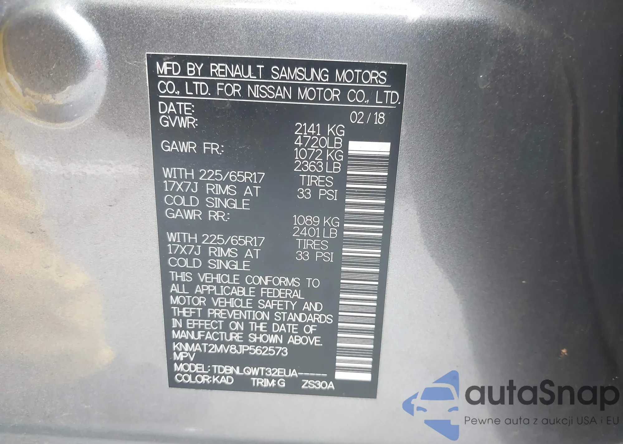 • VIN KNMAT2MV8JP562573