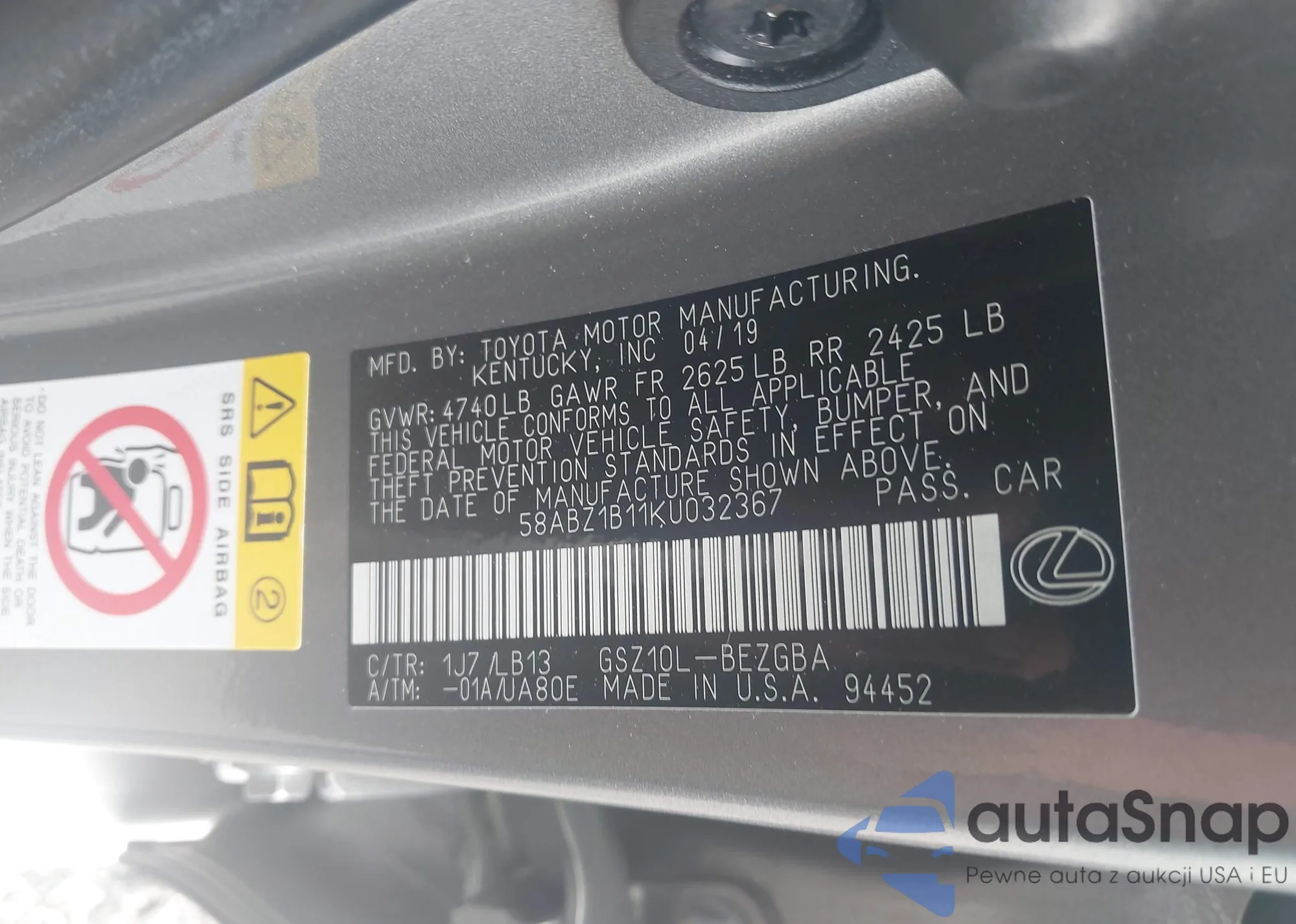 • Lot number 42913275
