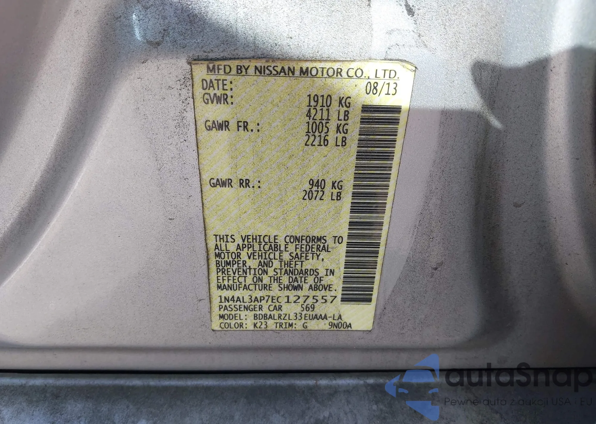 LOT: 43366482 VIN: 1N4AL3AP7EC127557