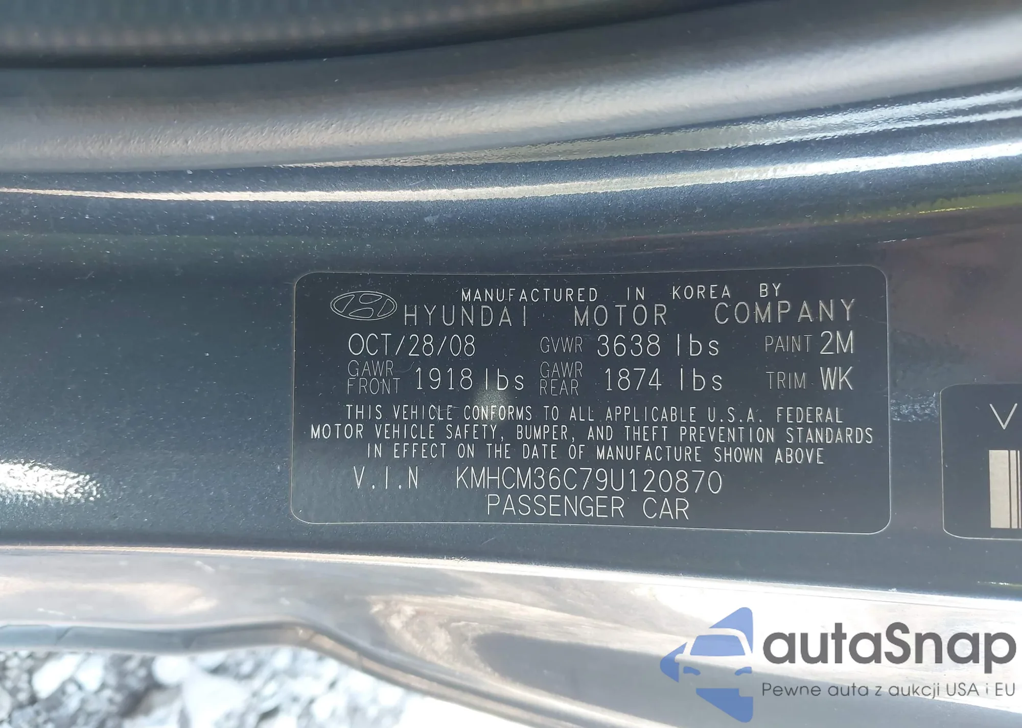 LOT: 43405180 VIN: KMHCM36C79U120870