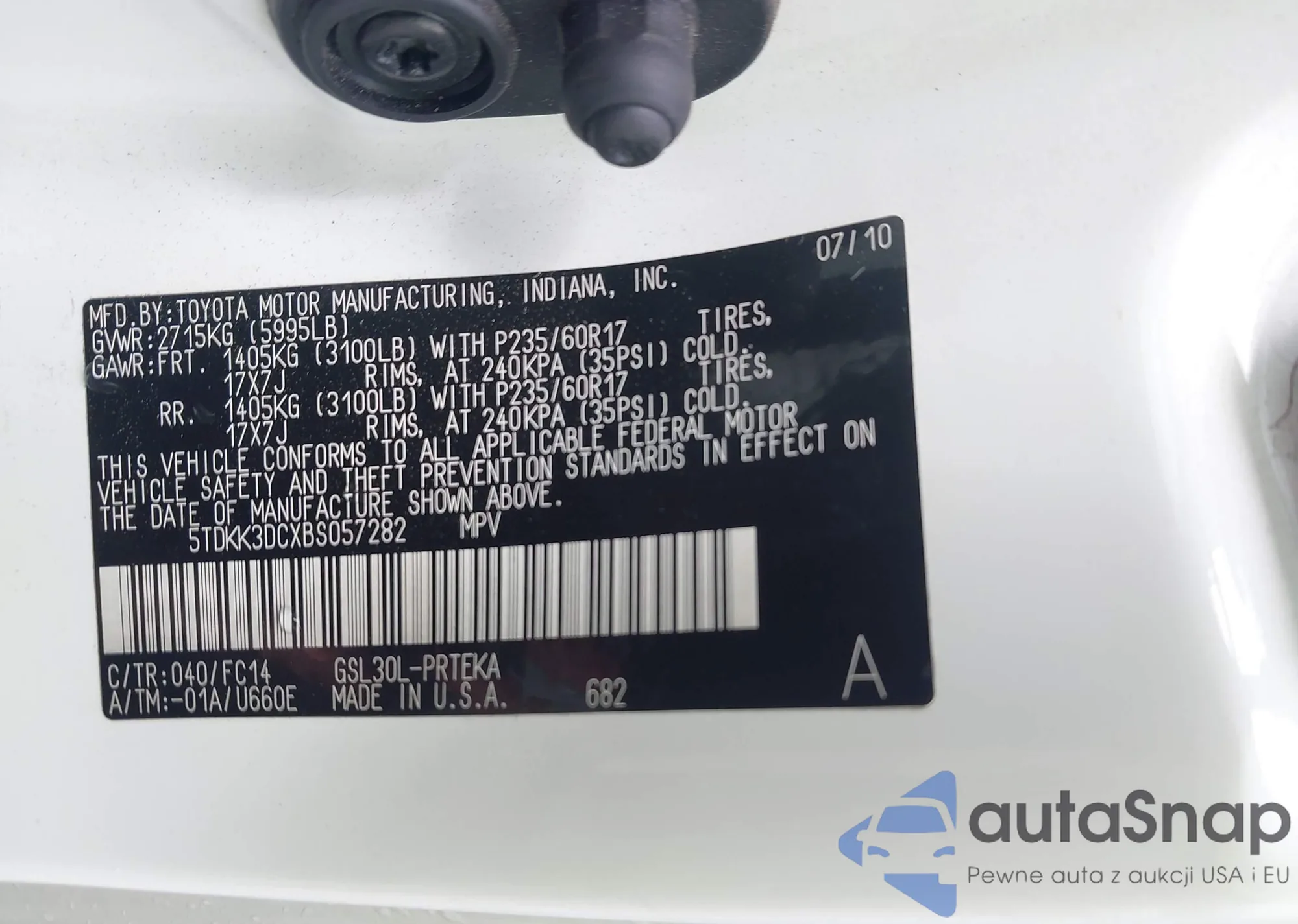 • VIN 5TDKK3DCXBS057282