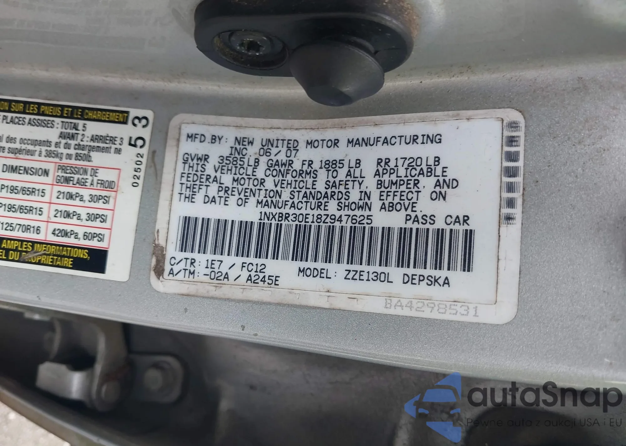 • VIN 1NXBR30E18Z947625