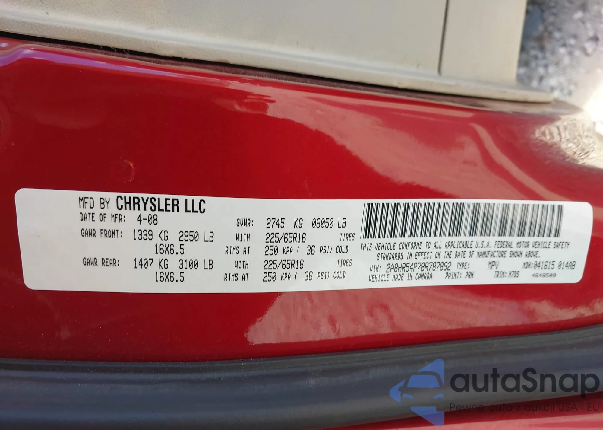 • VIN 2A8HR54P78R787892