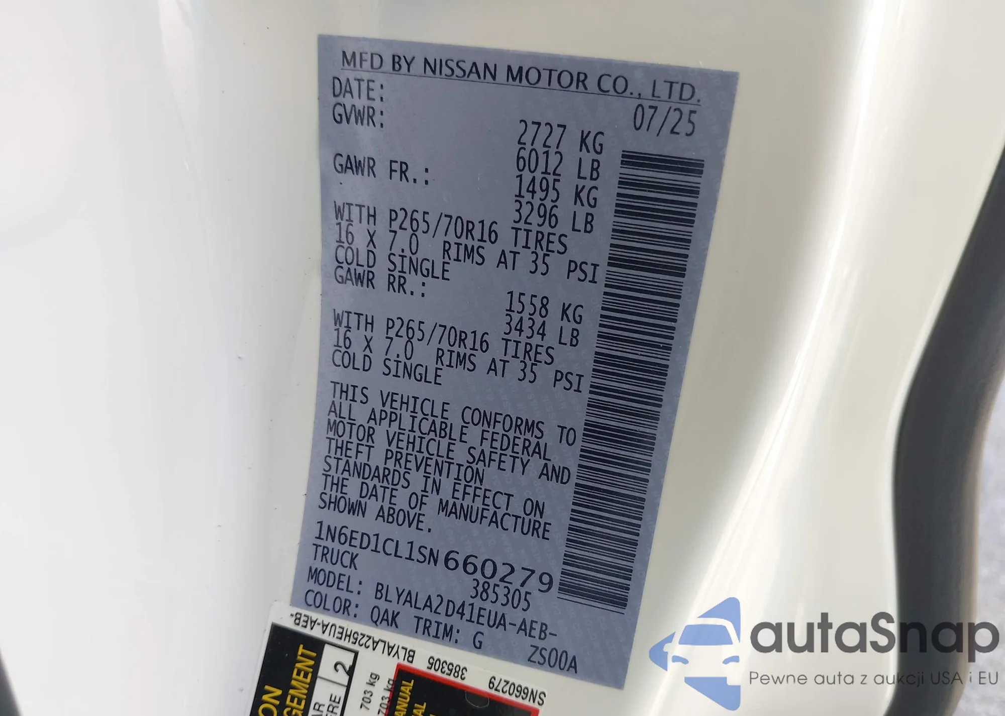 • VIN 1N6ED1CL1SN660279