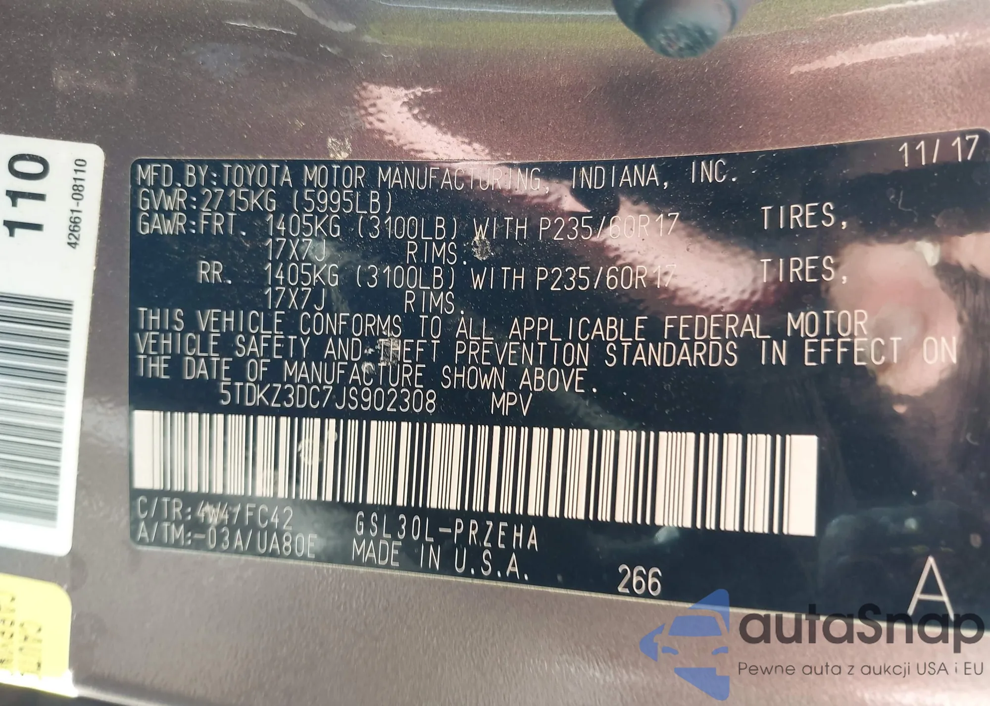 • VIN 5TDKZ3DC7JS902308
