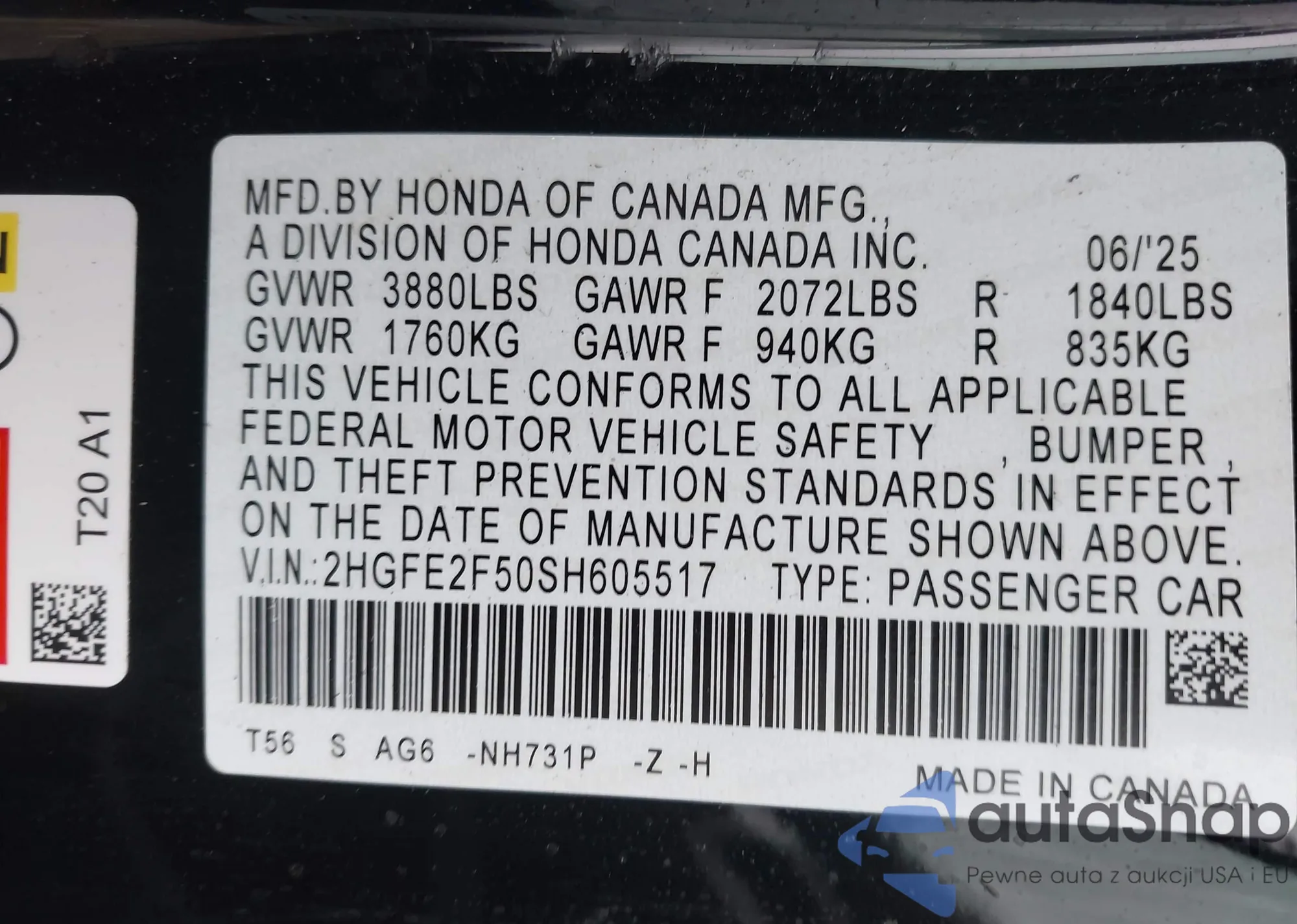 • VIN 19XFL2H84RE042263