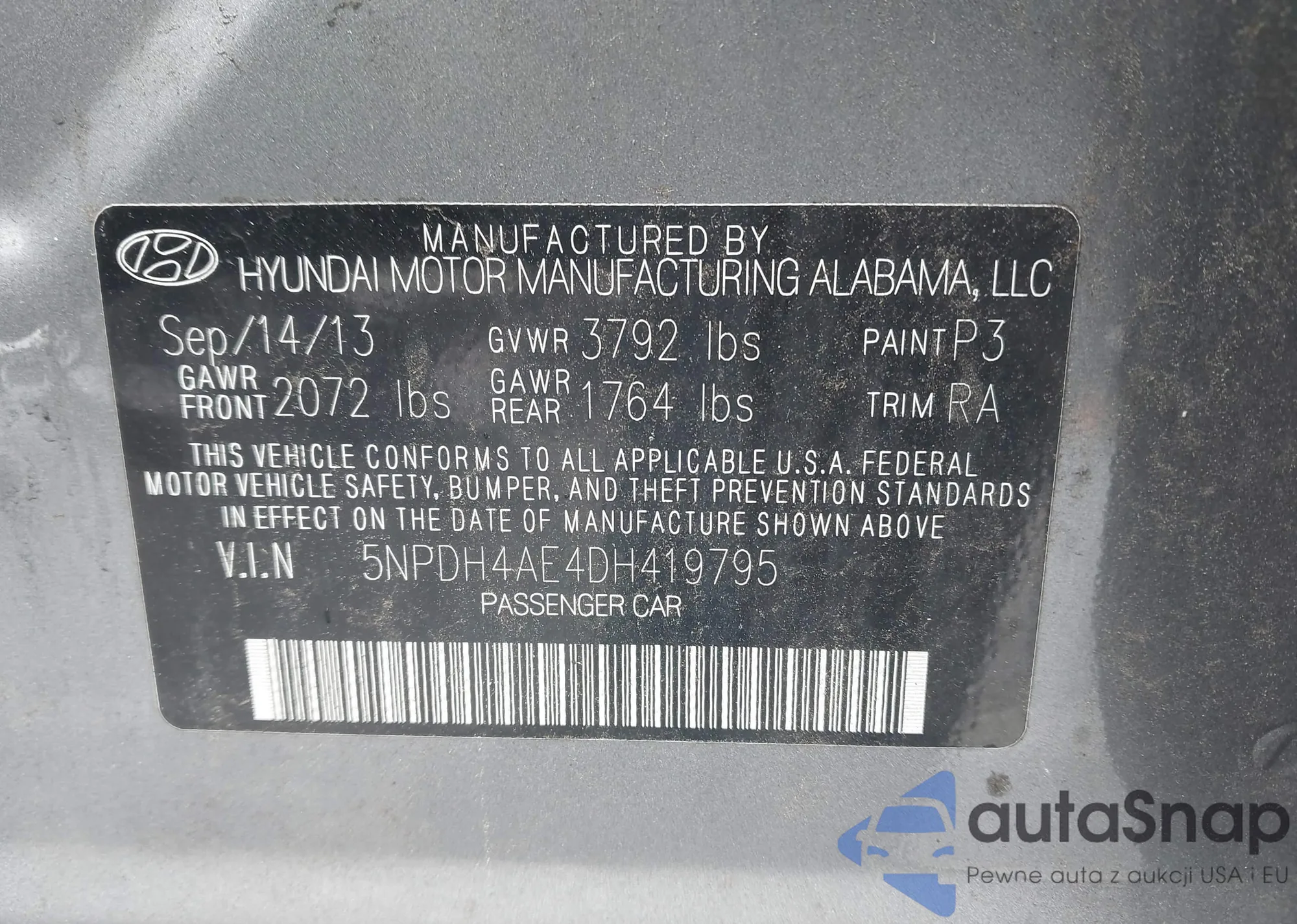 • VIN 5NPDH4AE4DH419795