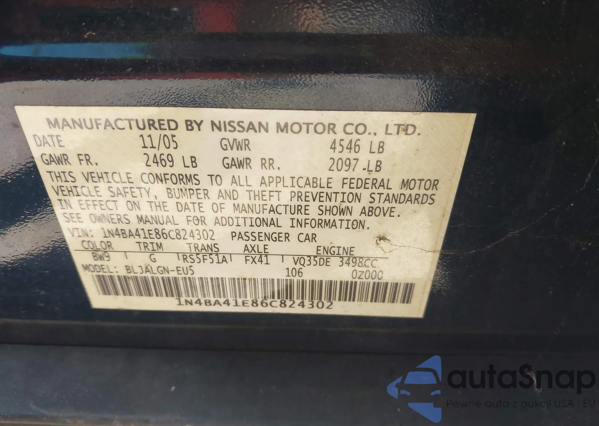 LOT: 43448675 VIN: 1N4BA41E86C824302