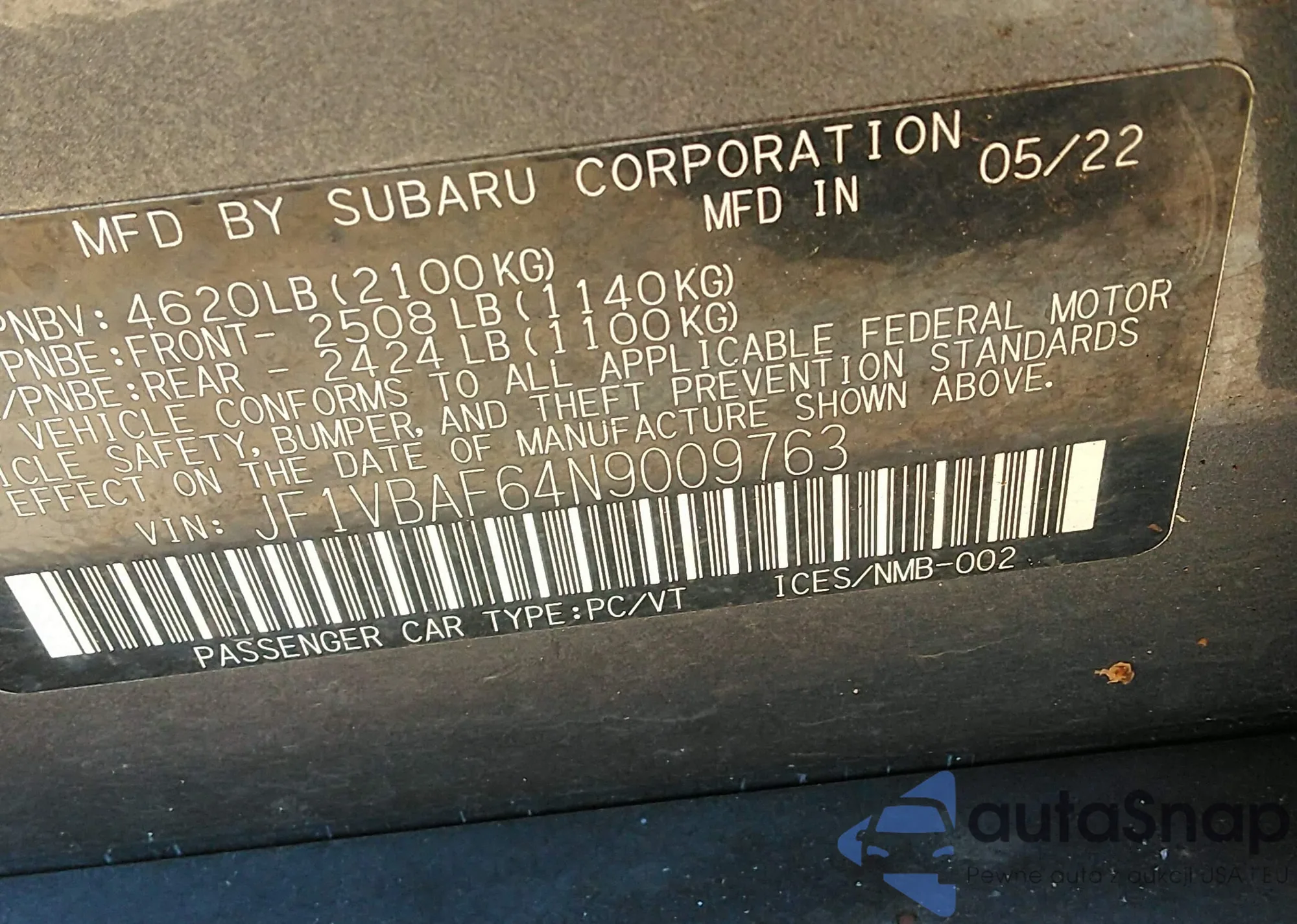 • VIN JF1VBAF64N9009763