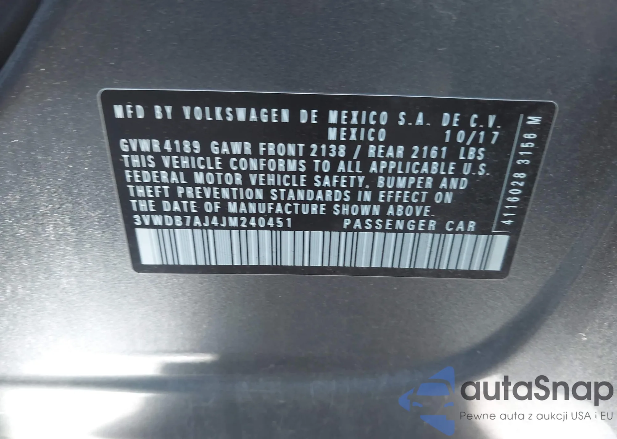 LOT: 43418340 VIN: 3VWDB7AJ4JM240451