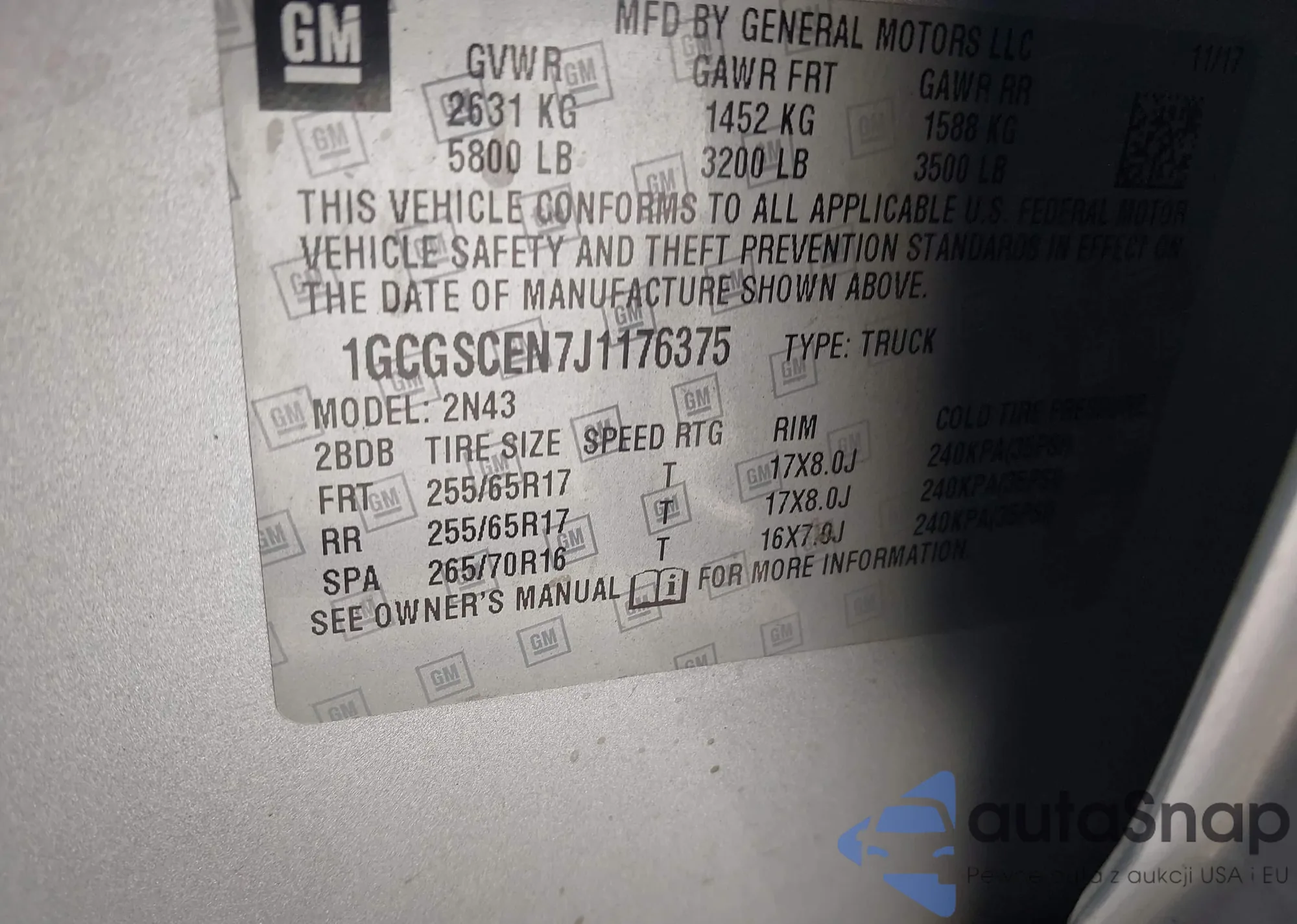 LOT: 43423153 VIN: 1GCGSCEN7J1176375