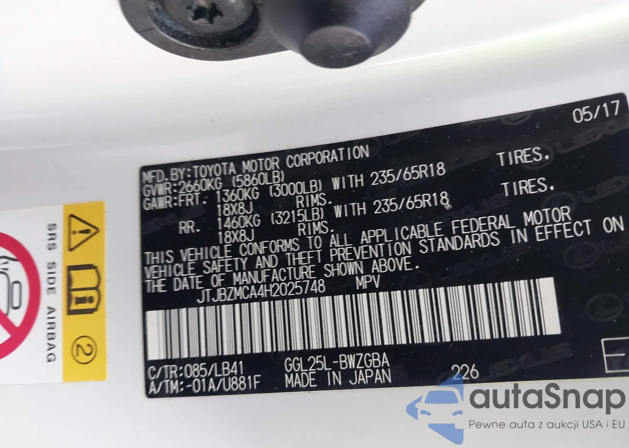 LOT: 43461976 VIN: JTJBZMCA4H2025748