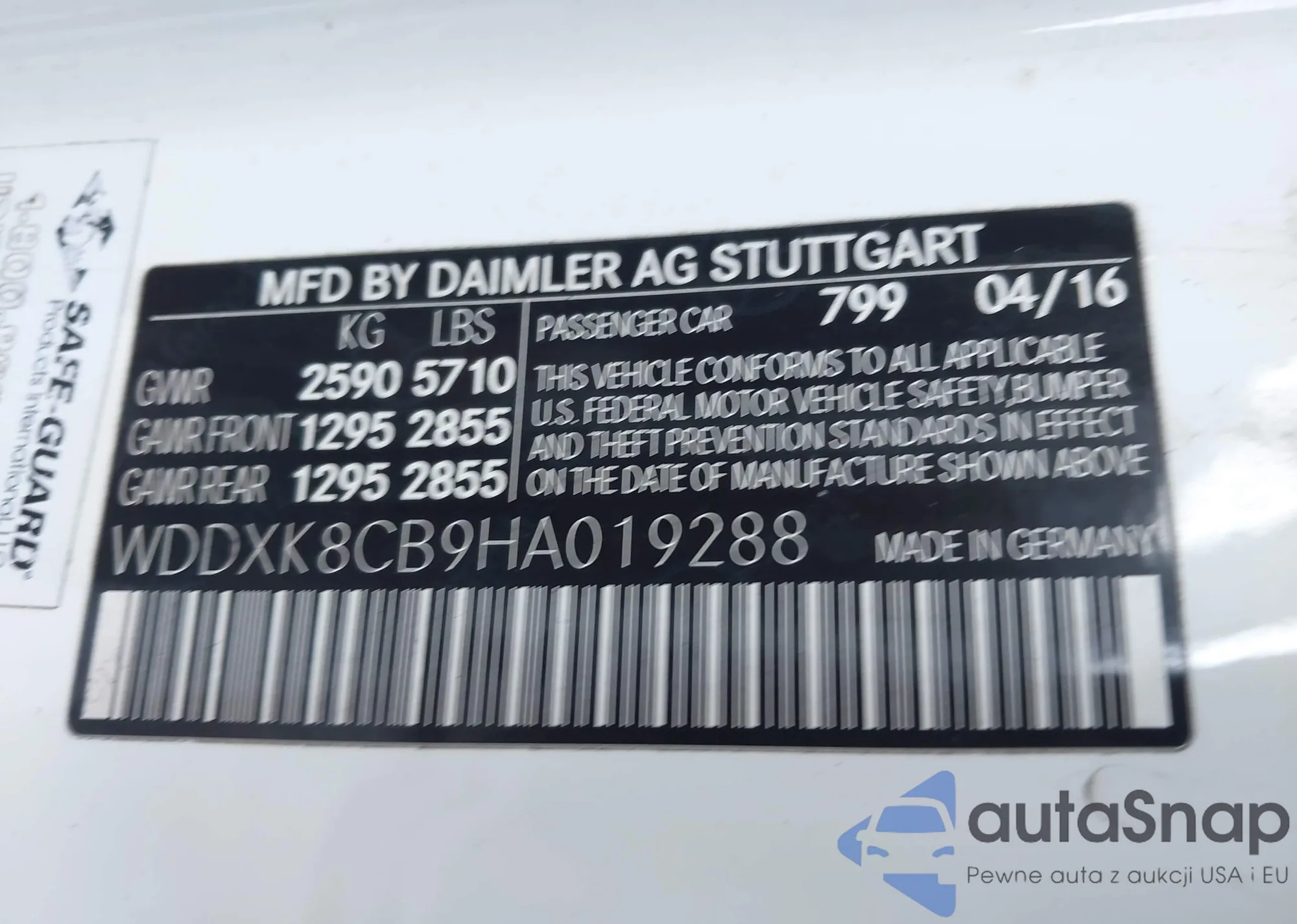 • VIN WDDXK8CB9HA019288