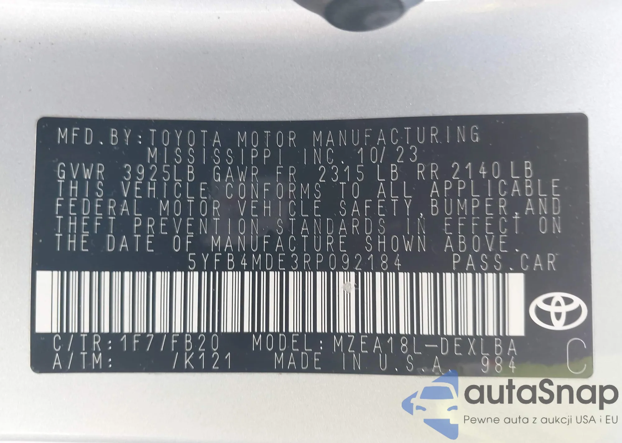 • VIN 5YFB4MDE3RP092184