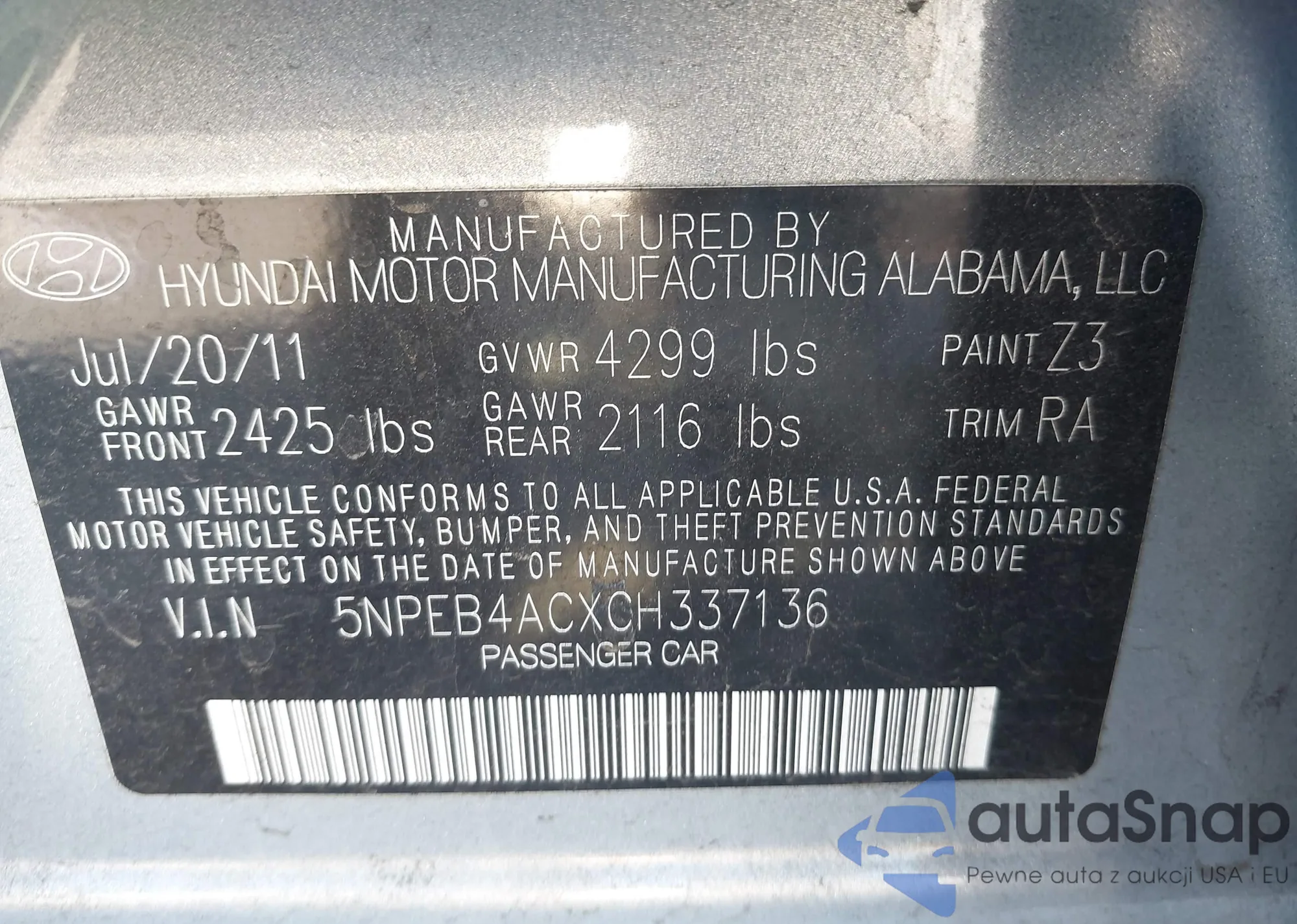 • VIN 5NPEB4ACXCH337136