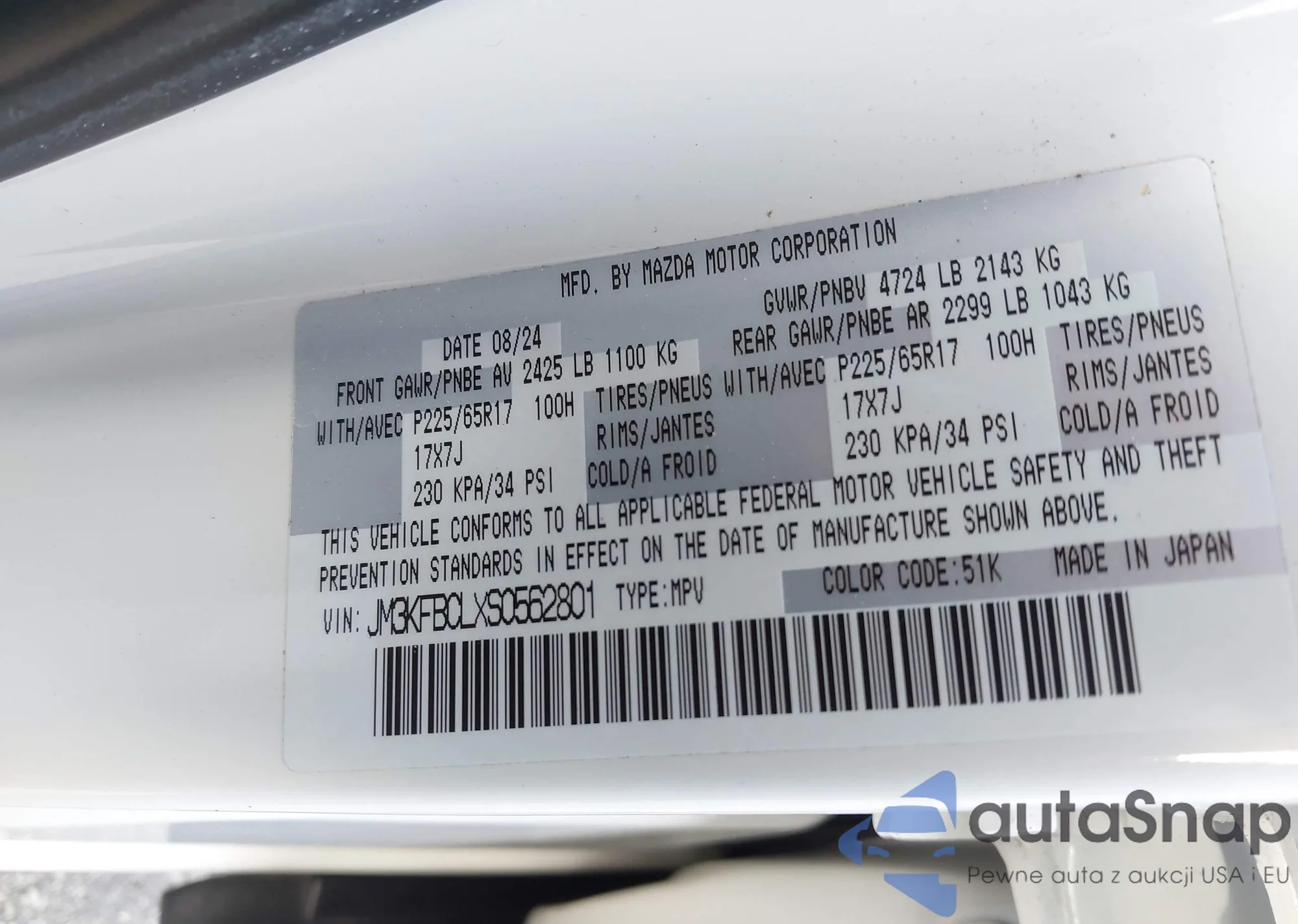• VIN JM3KFBCLXS0562801