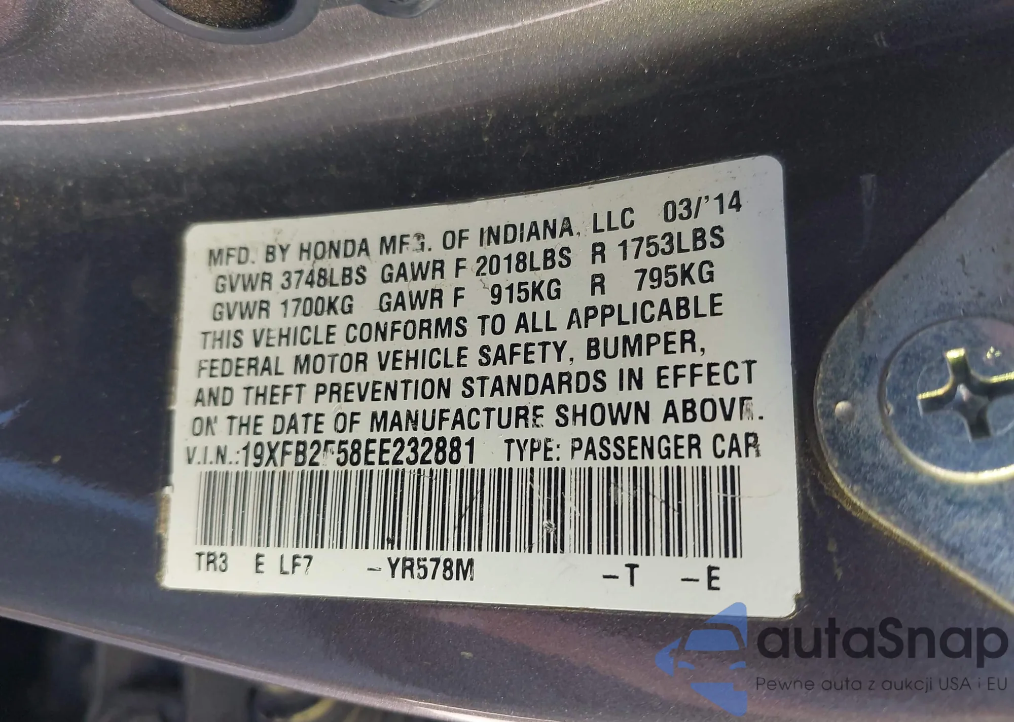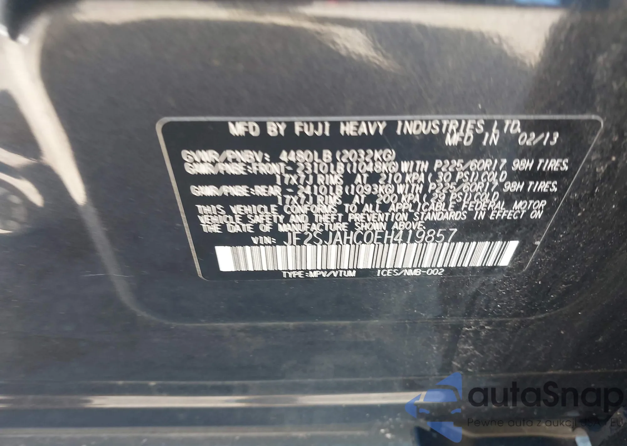 LOT: 43501868 VIN: JF2SJAHC0EH419857