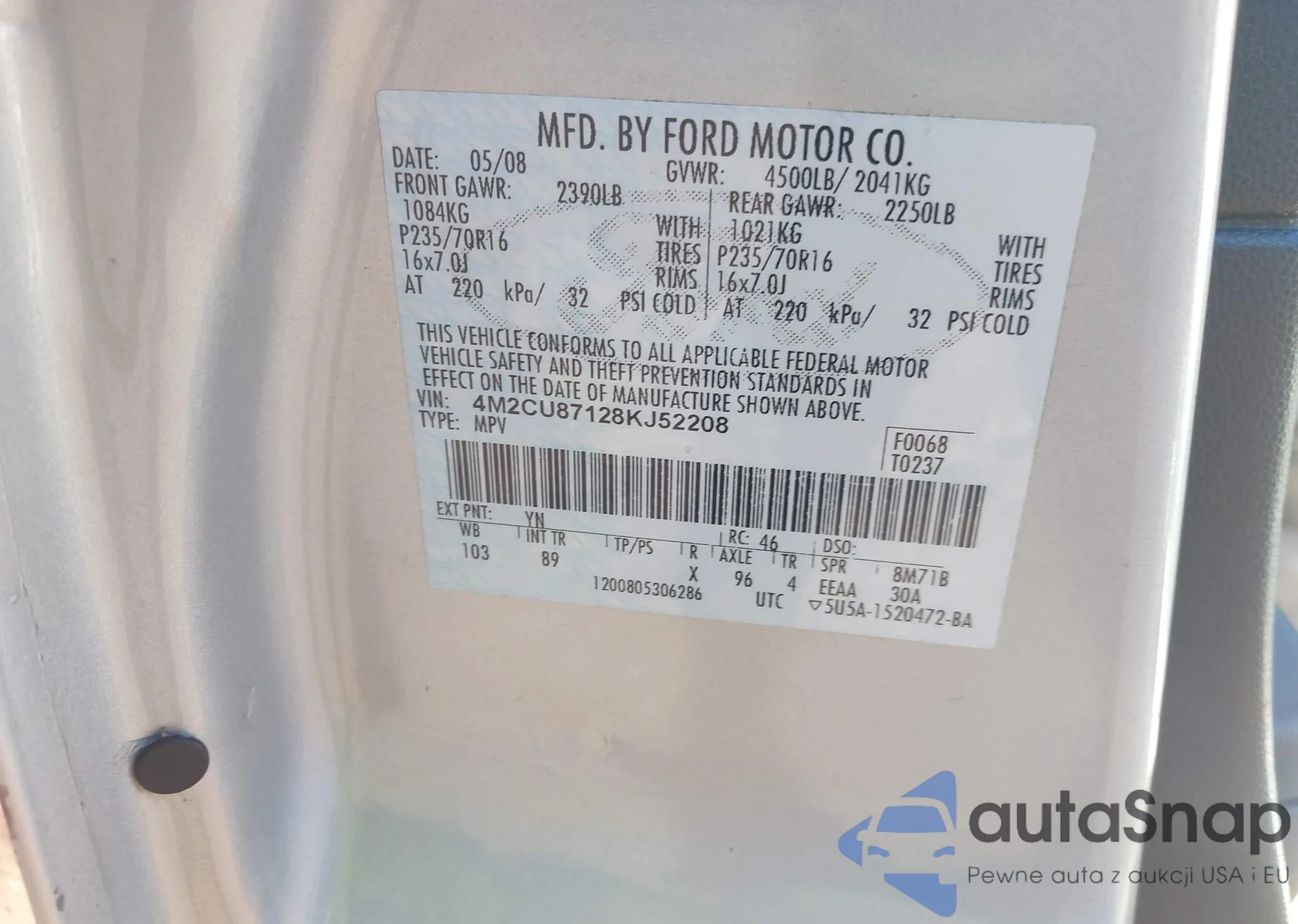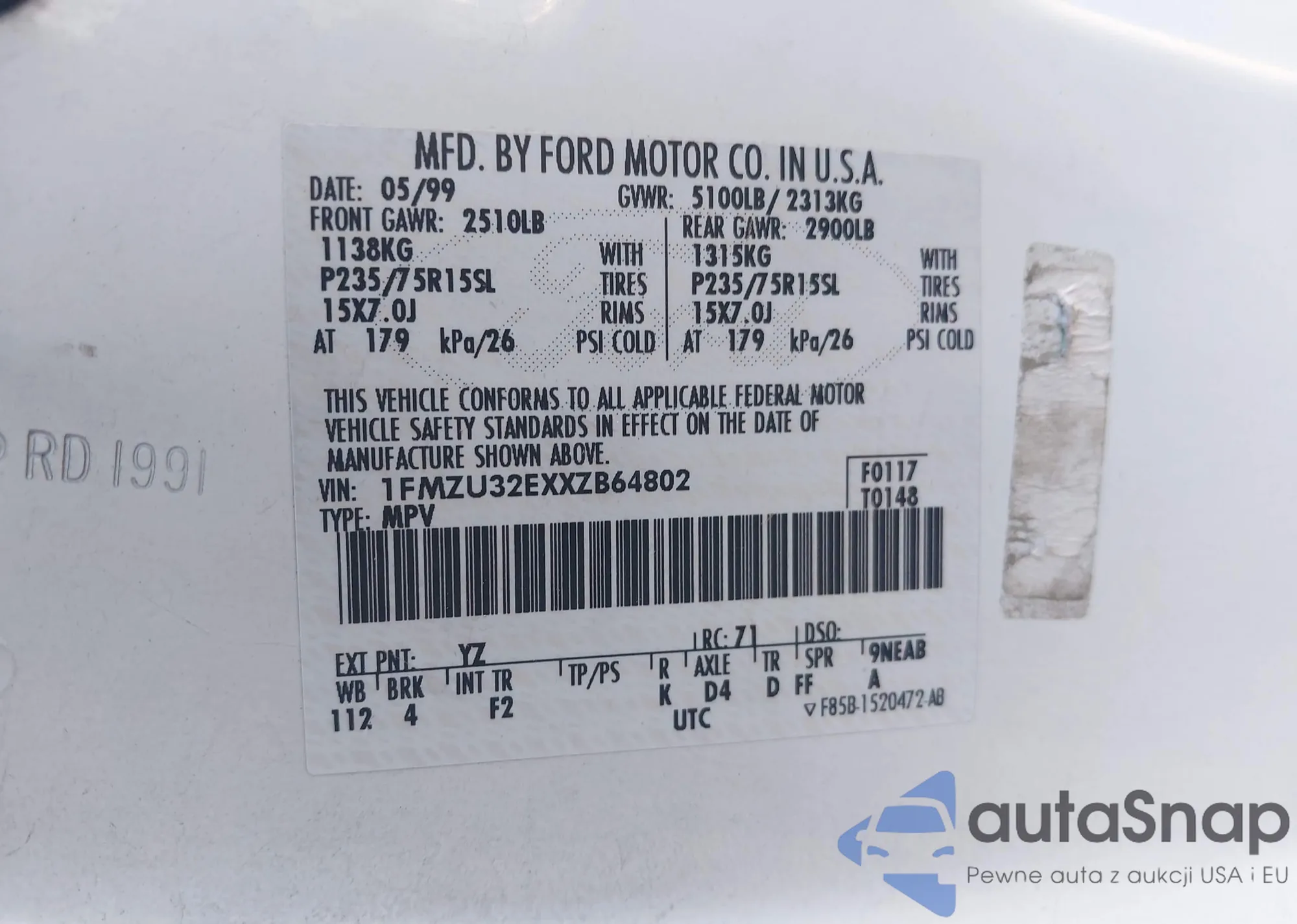 LOT: 43503435 VIN: 1FMZU32EXXZB64802