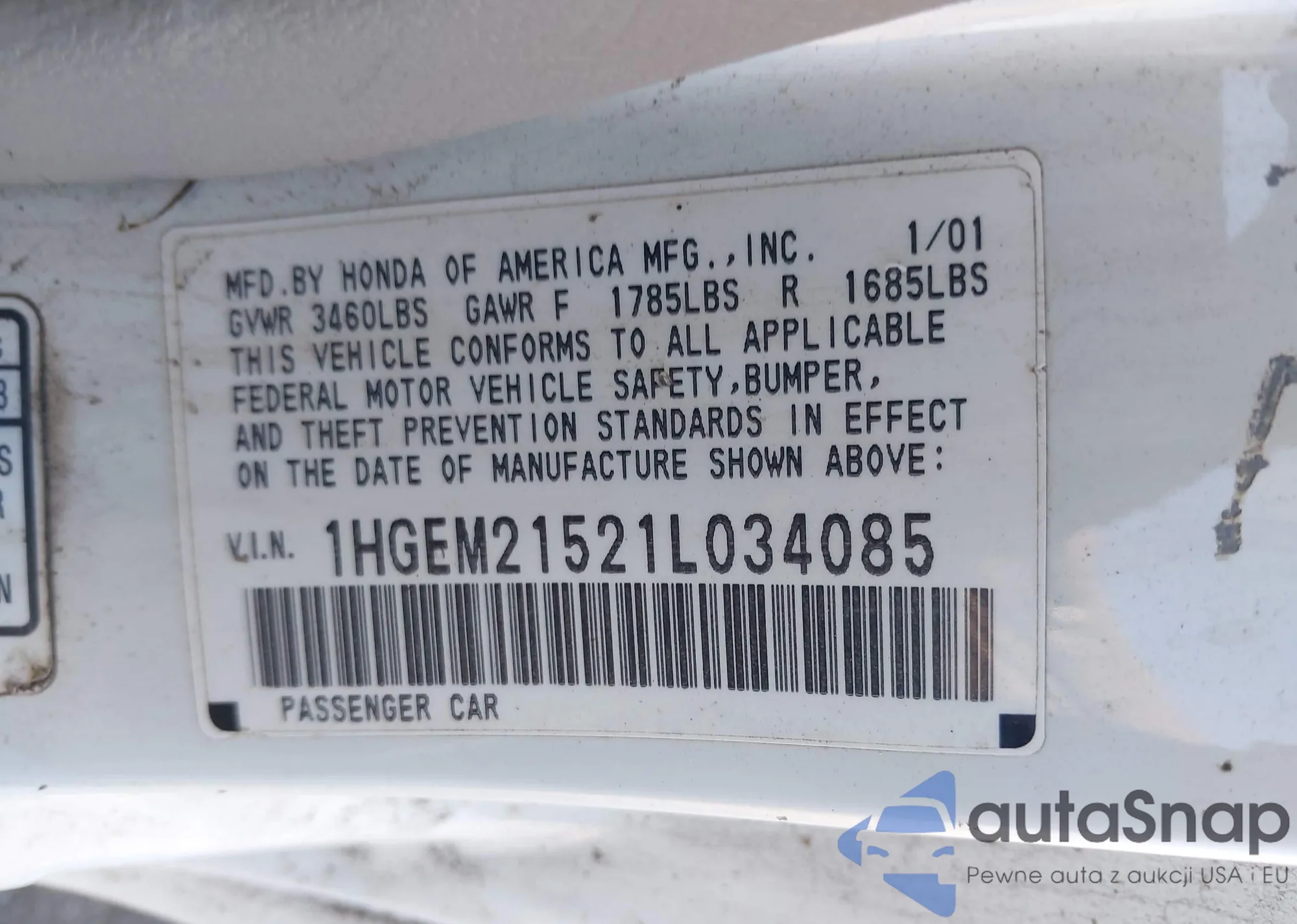 LOT: 43502726 VIN: JH4DB76501S001371