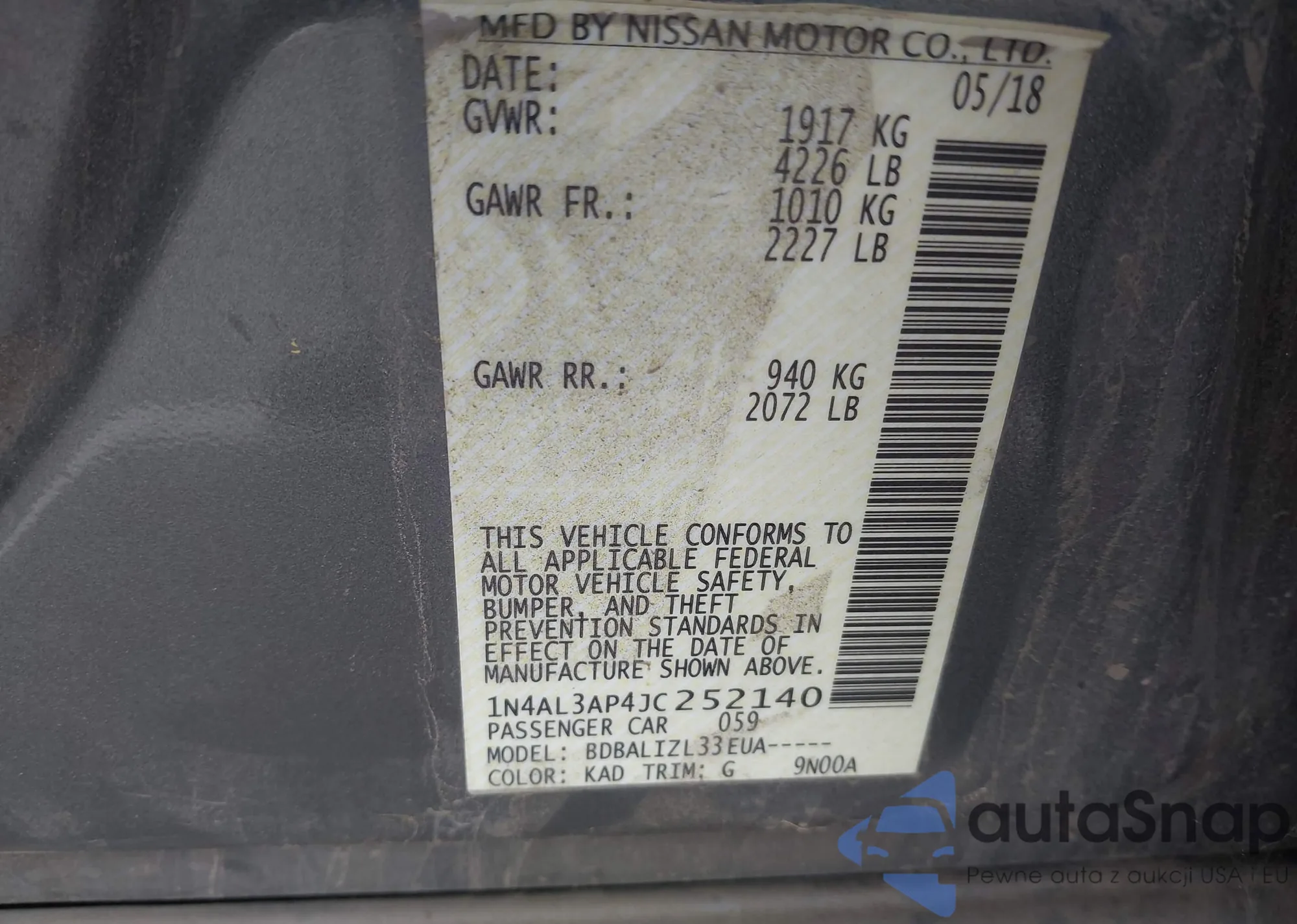 LOT: 43518961 VIN: 1N4AL3AP4JC252140