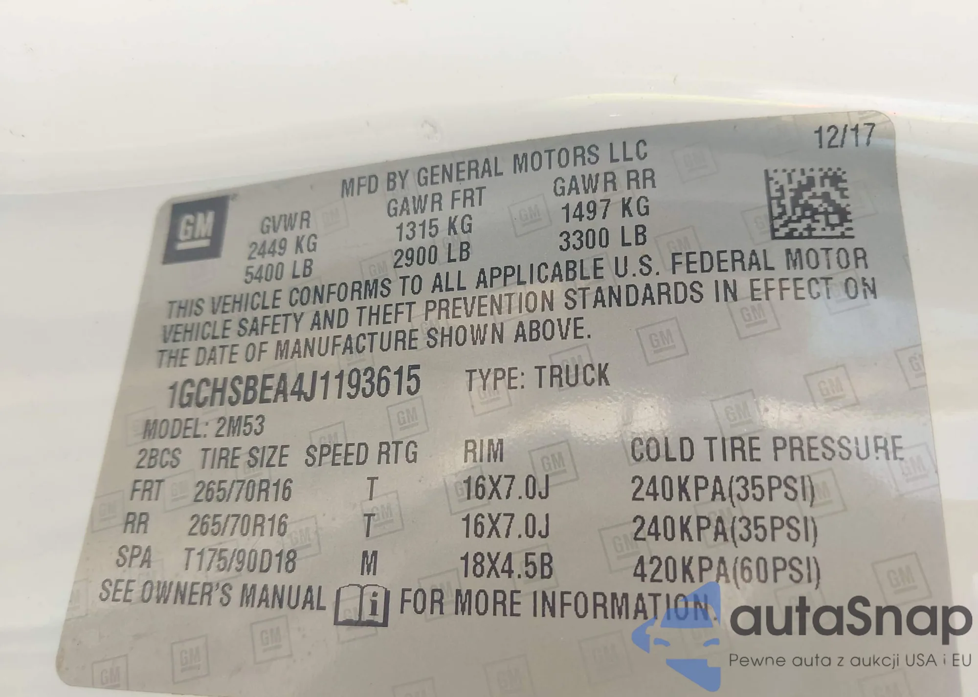 LOT: 43325301 VIN: 5TFUX4EN2CX009206