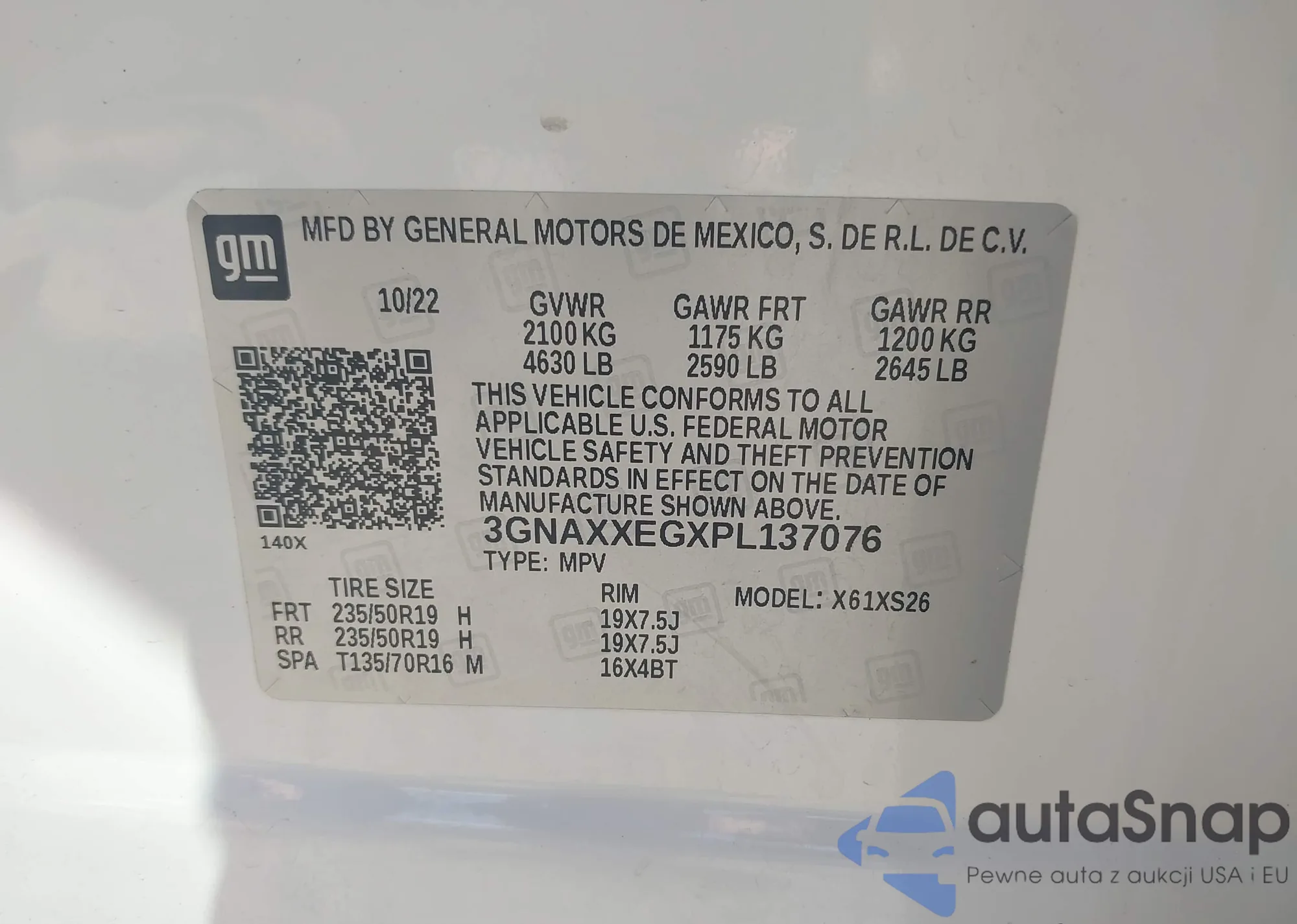 LOT: 43440462 VIN: 3GNAXXEGXPL137076