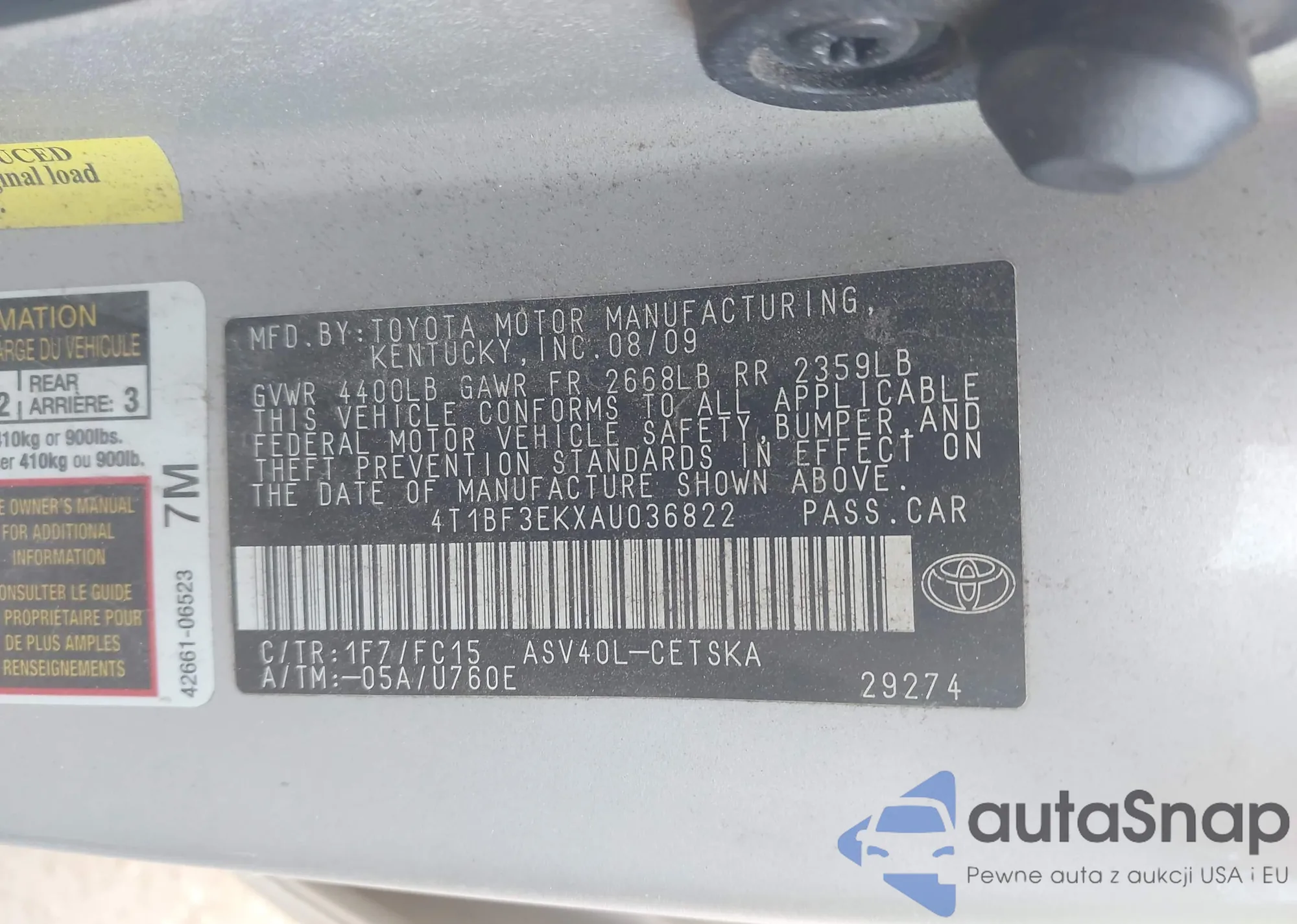 • VIN 4T1BF3EKXAU036822